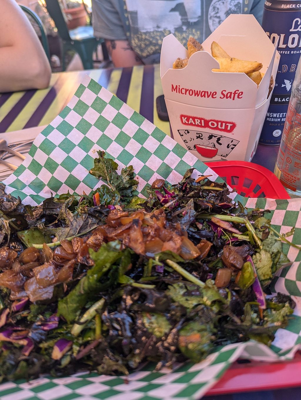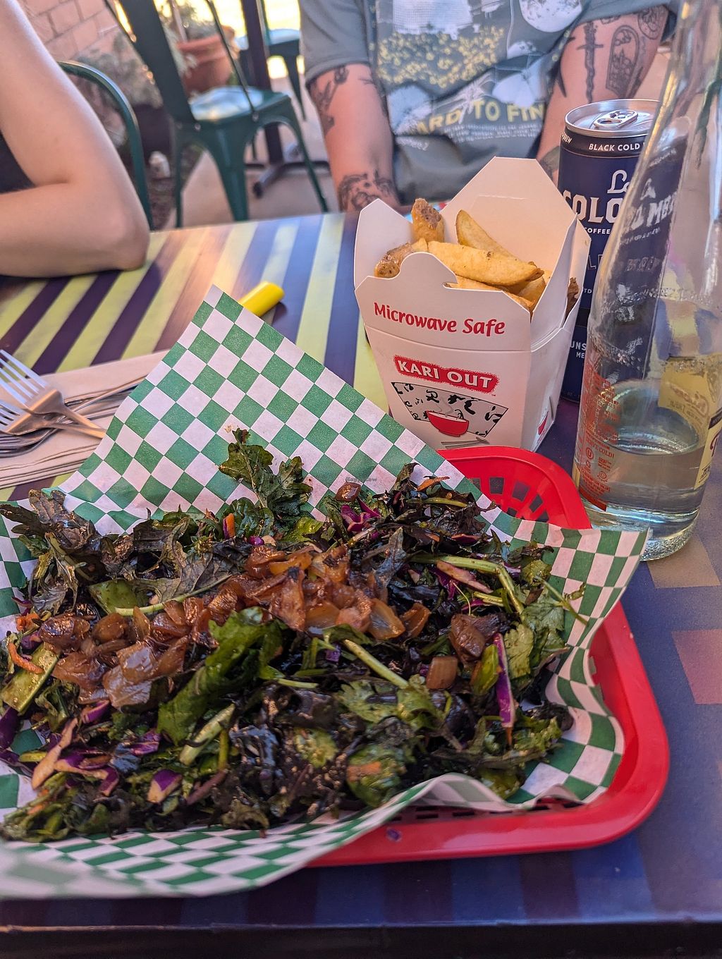 Serves meat, vegan options available. Casual restaurant with vegan options, including loaded fries, a Thai salad, and a vegan sandwich. Open Mon-Tue 8:00am-6:00pm, Fri-Sun 8:00am-6:00pm.