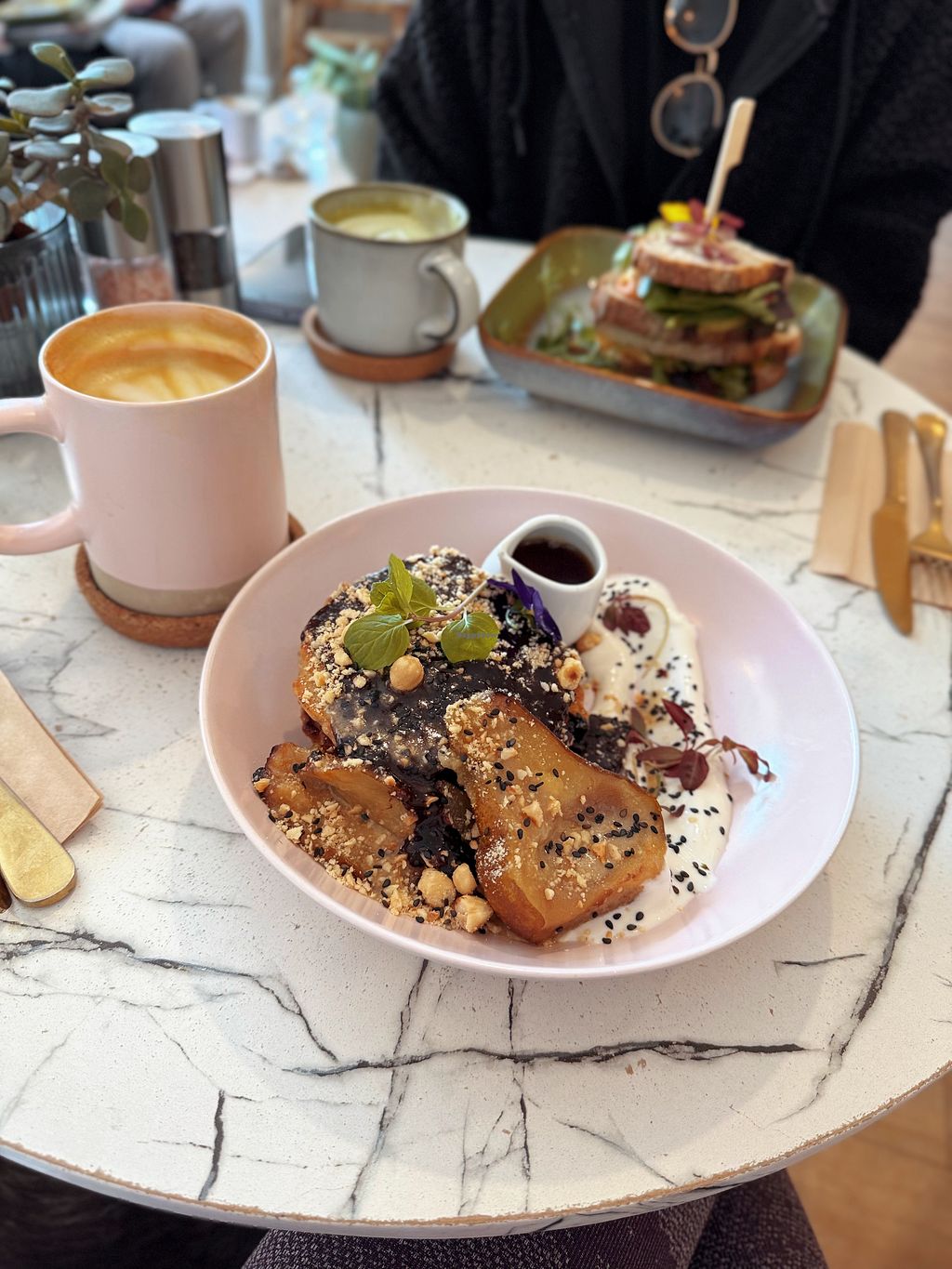 Winter Pear Spelt Pancakes & Reuben Sandwich