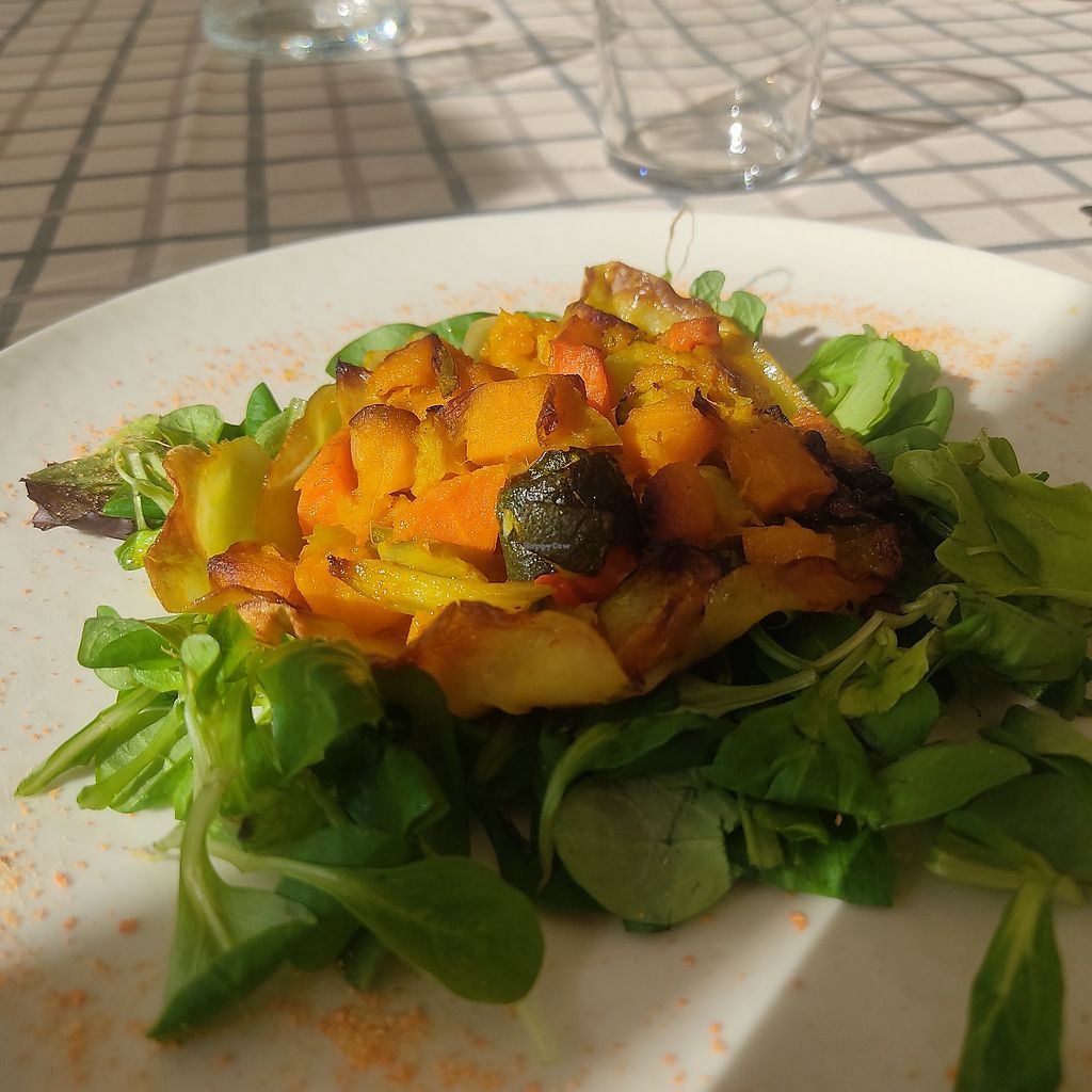 I reserved a place in this typical Valtellina restaurant with a view on the surrounding mountains around Sondrio. I had a vegetable pie as a starter and a vegan risotto with apples and lavander - adapted from the original dish on the menu. Really delighted. My advice is to book in advance.