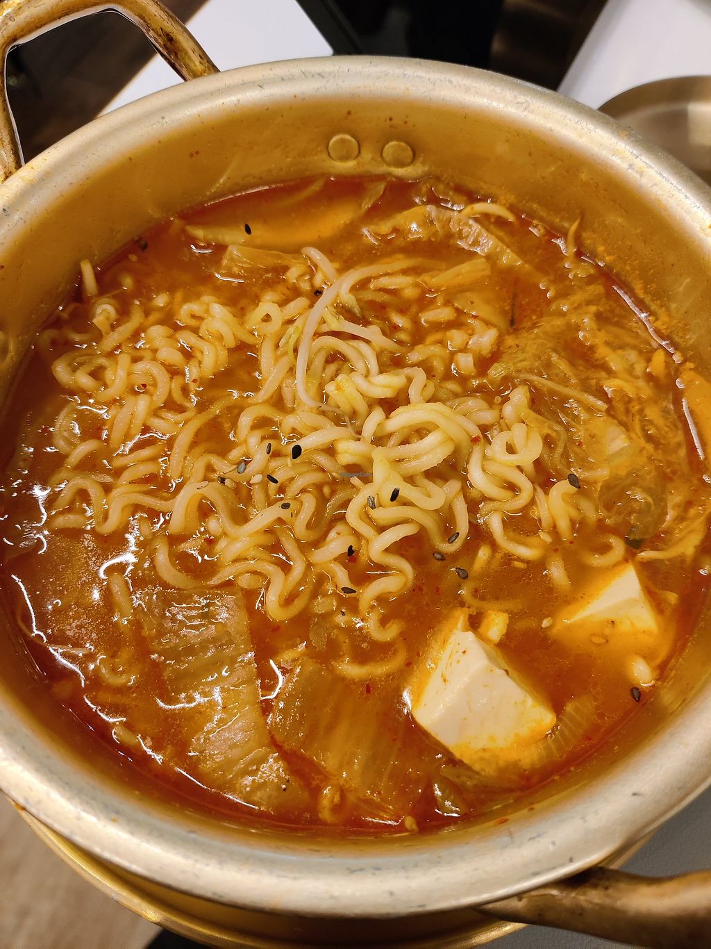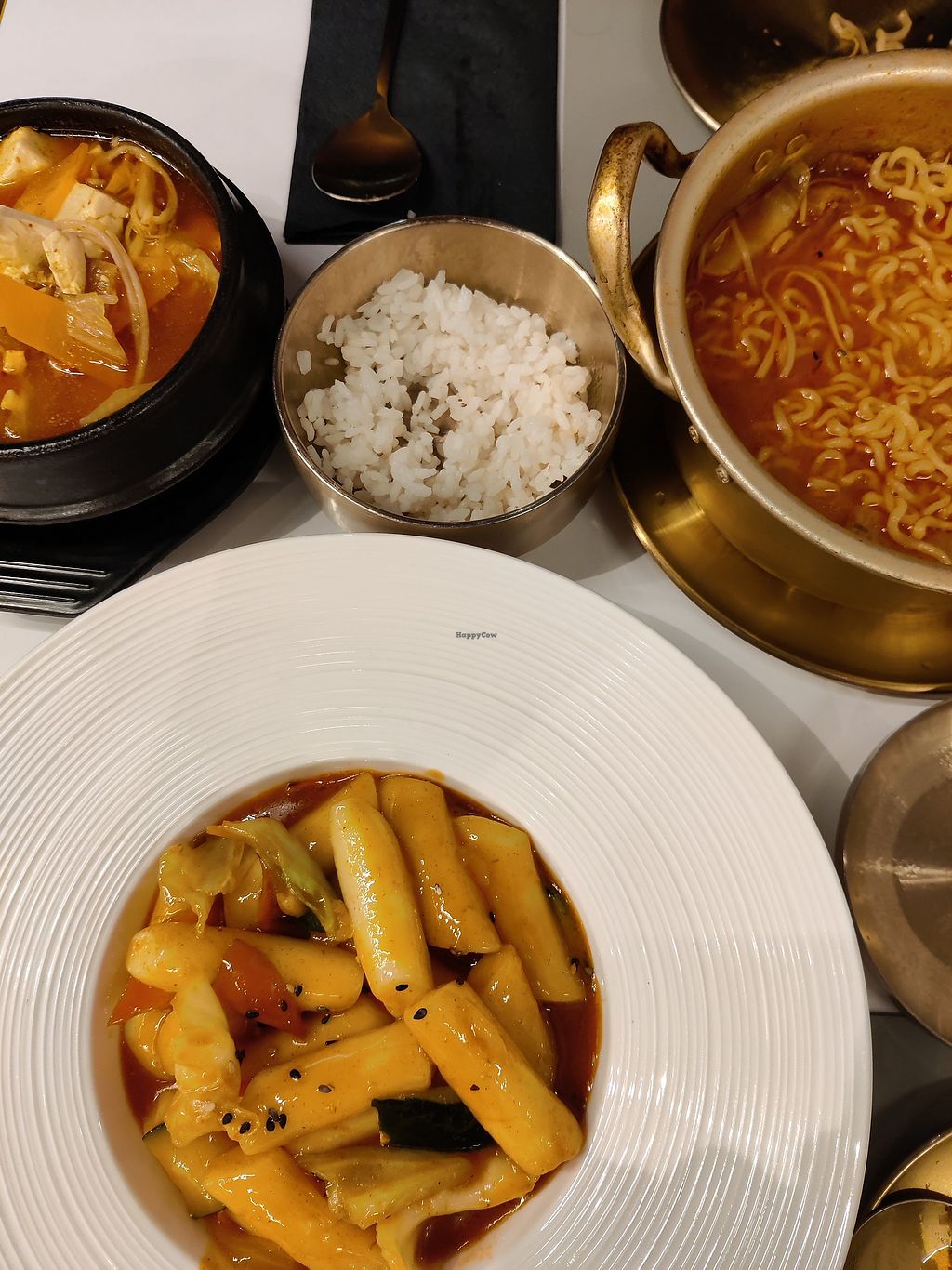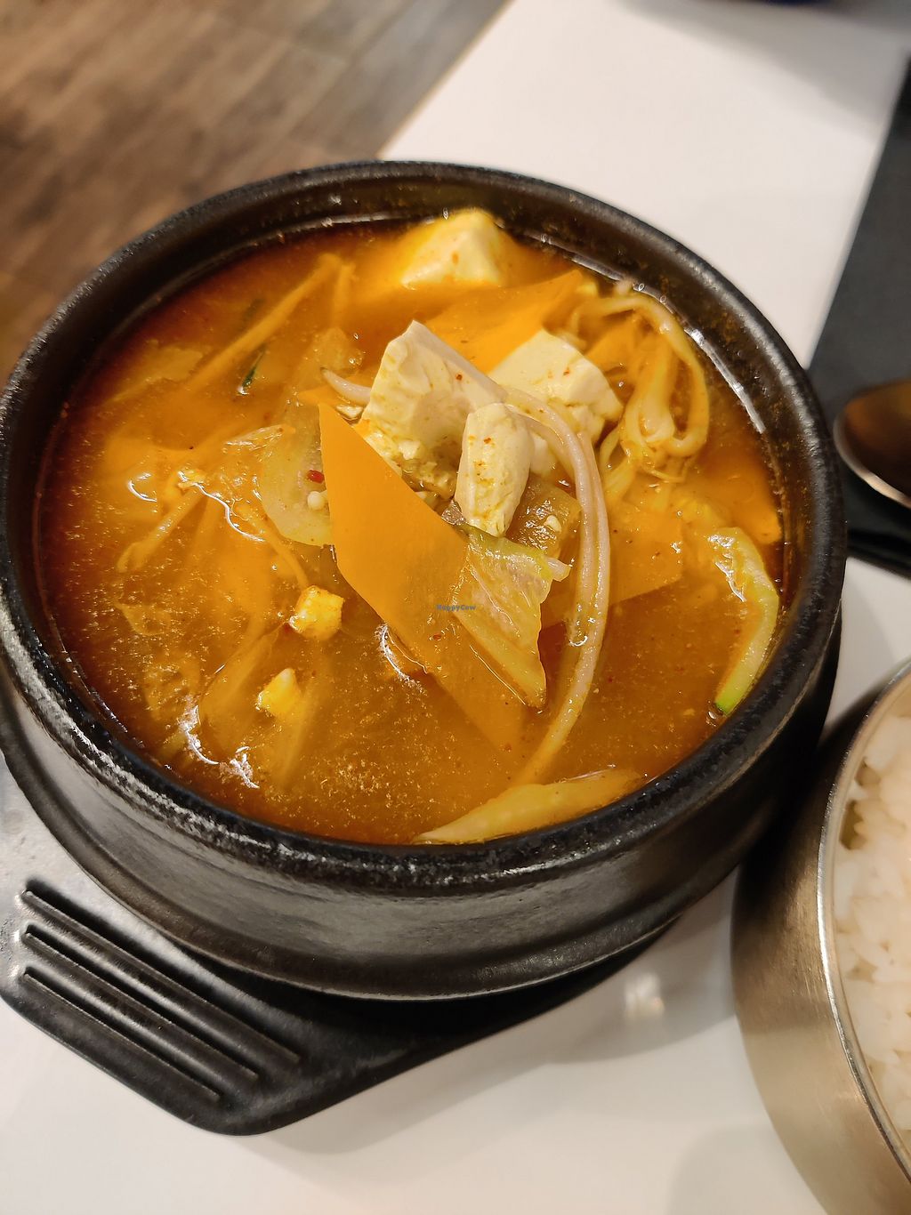 This Korean restaurant has some good vegan options that are clearly labeled in the menu. I got the kimchi tofu soup, the veggie ramen, vegan japchae and the tteokkbokki. Everything was nice.