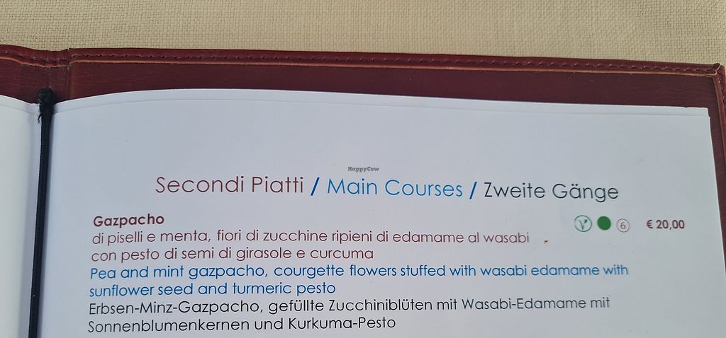 Pea and mint gazpacho, zucchini flowers stuffed with edamame wasabi wi…