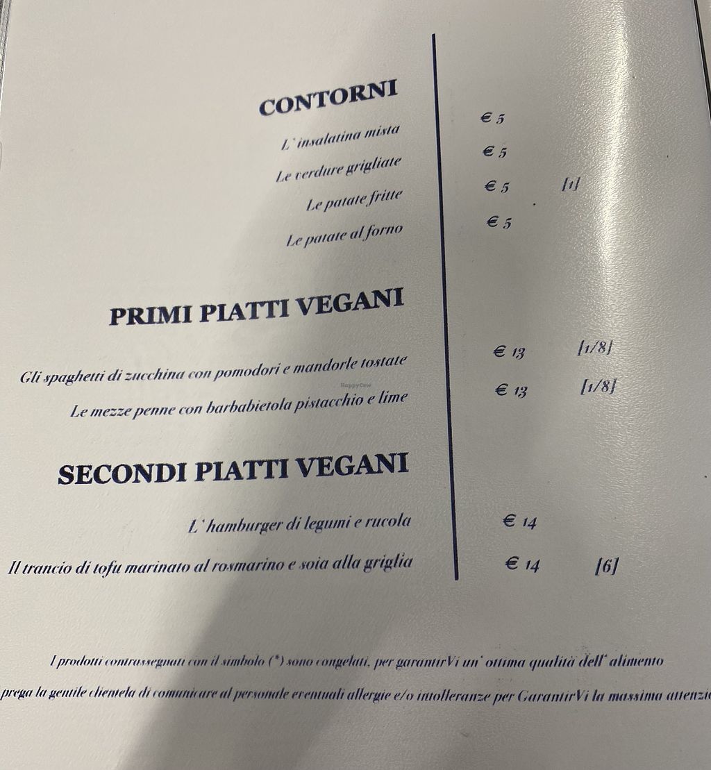 screenshot of menu with vegan options