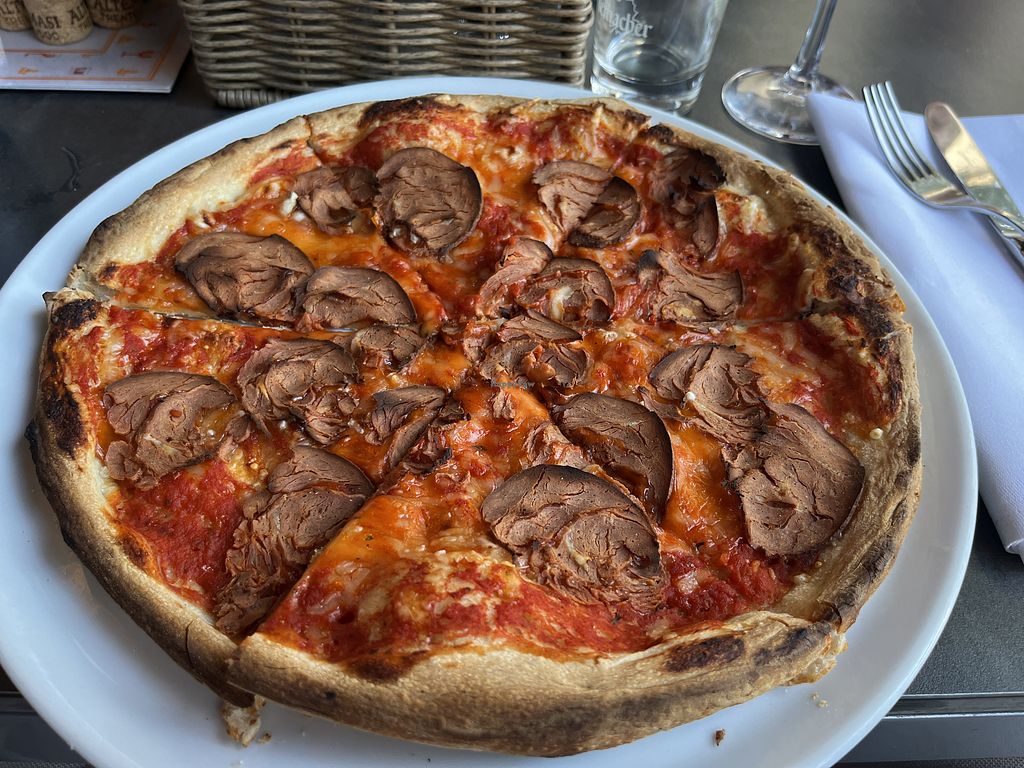 Vegane Vor, Haupt und Nachspeise ist gegeben. Die Pizza schmeckt gut. - Edit