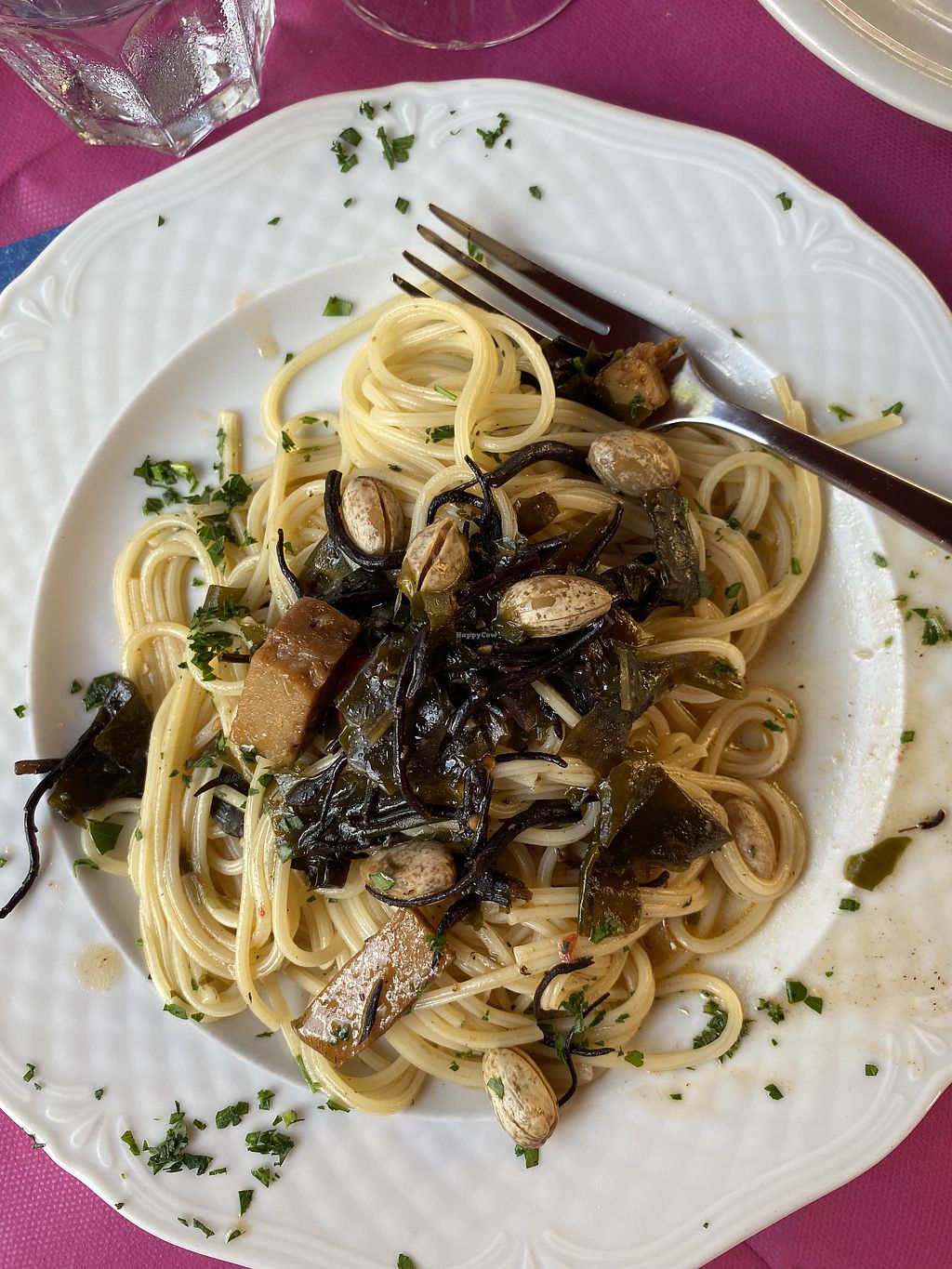 I really liked the non clams pasta, reminds me a lot of the fish pasta I had as a kid in Italy. It tastes like the sea! I Recommend it