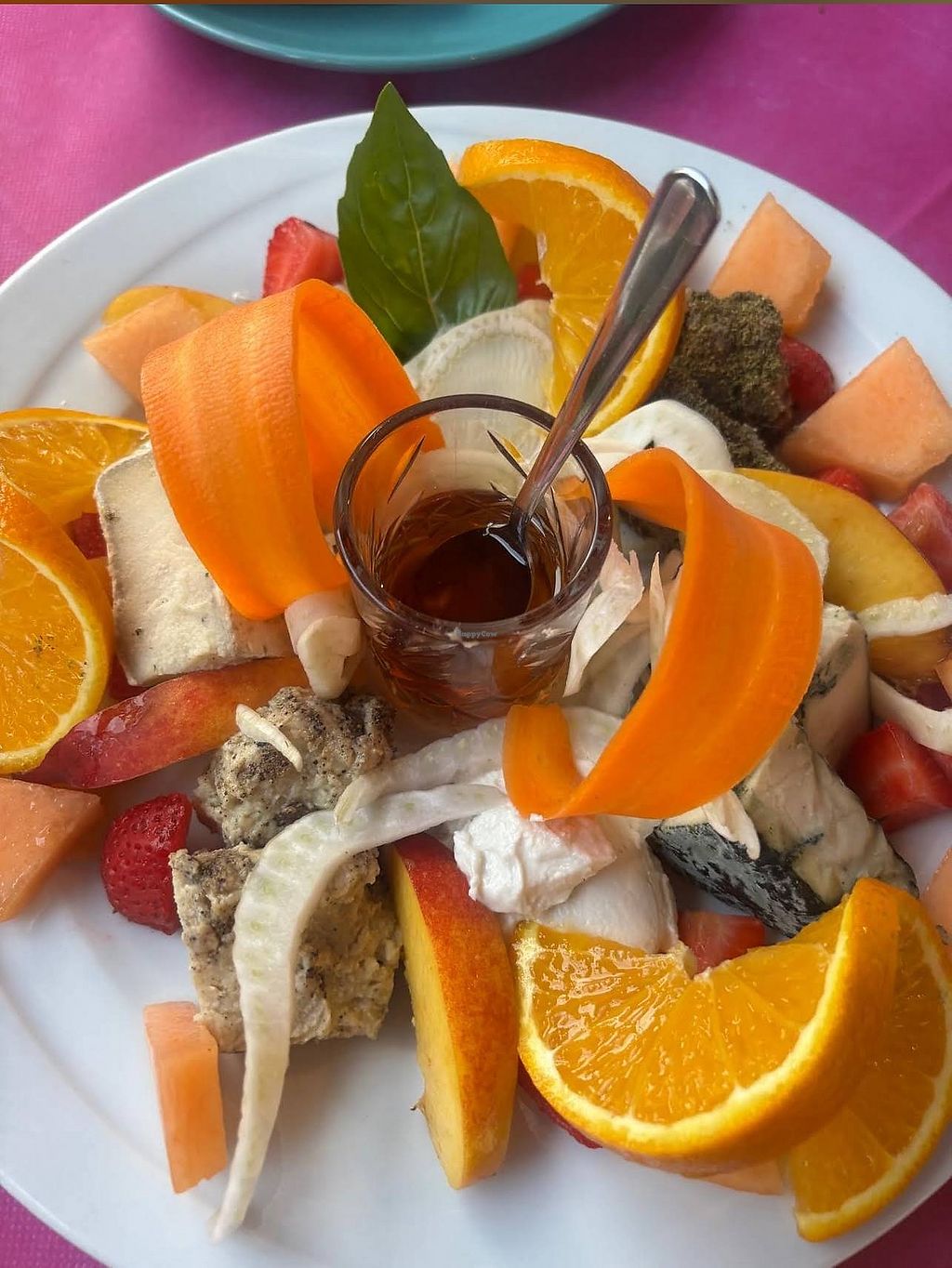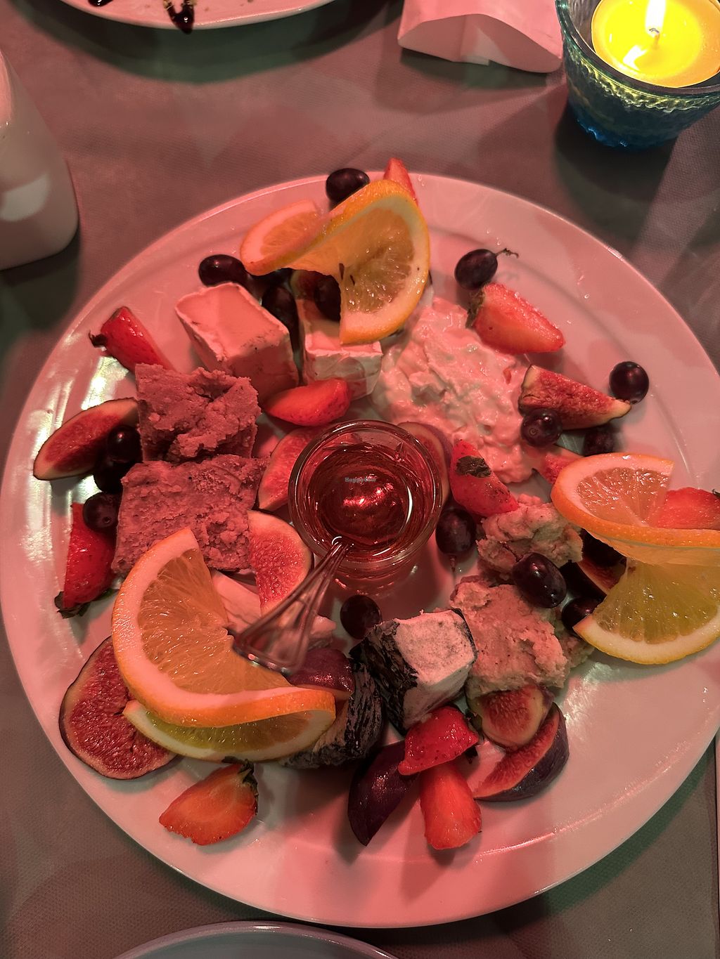 We had the most incredible starter possible. A board with so many different kinds of fruits and vegan cheese made by the owners themselves. The vegan pesto lasagna is also amazing. They have many different options for deserts as well. Not to be missed!
