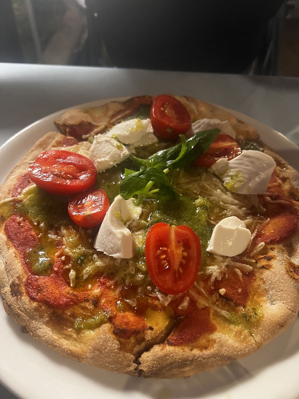 We had two pizzas one with pesto and ricotta which was amazing. And another pizza with tuna which was okay, the tuna was sashimi style and had not the best flavour. All in all expensive but I would still recommend