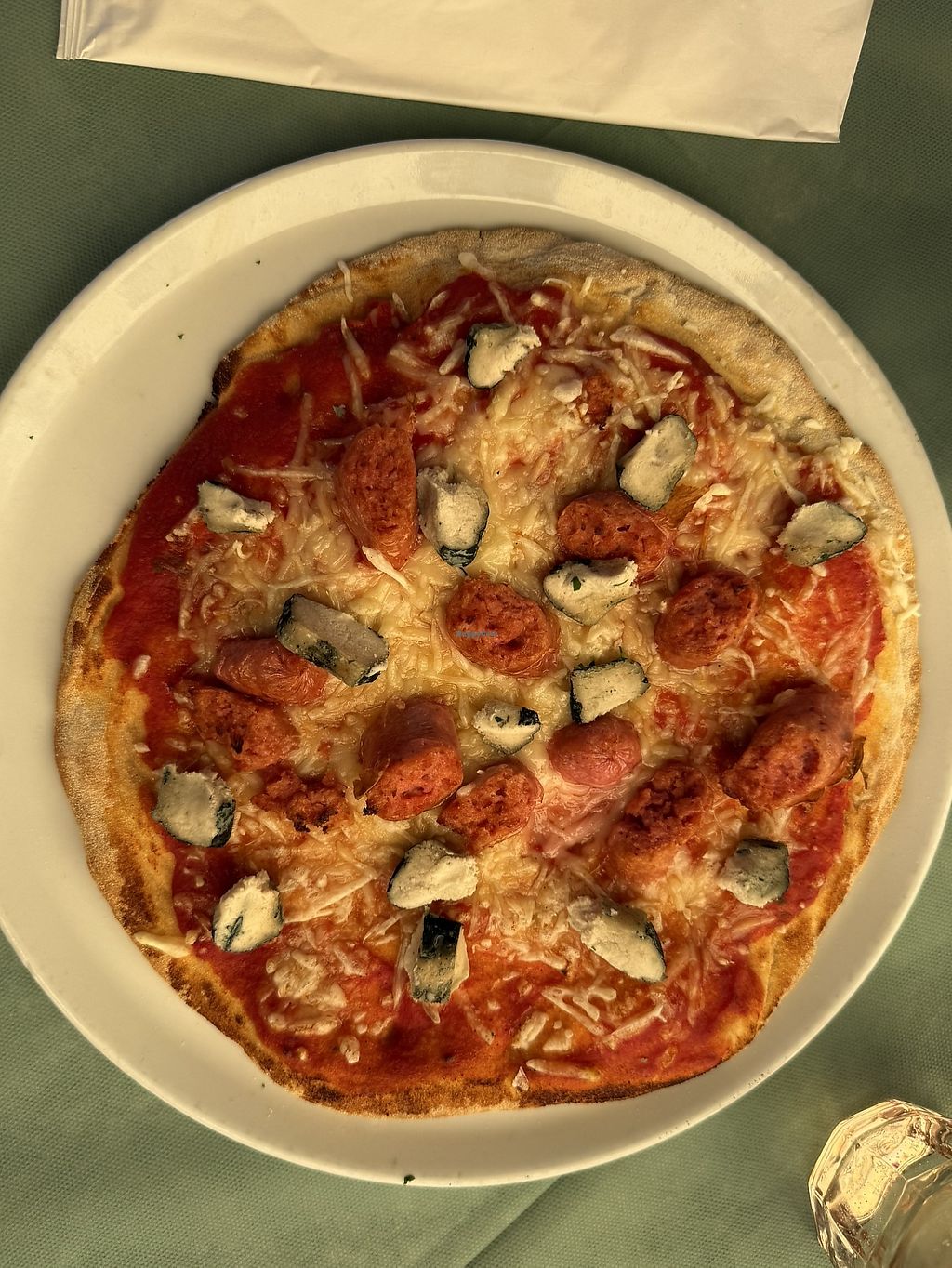 We had the Gorgonzola and Sausage Pizza and the Tiramisu as dessert. It tasted amazing. The staff was professional and great. We sat outside and enjoyed the food.
