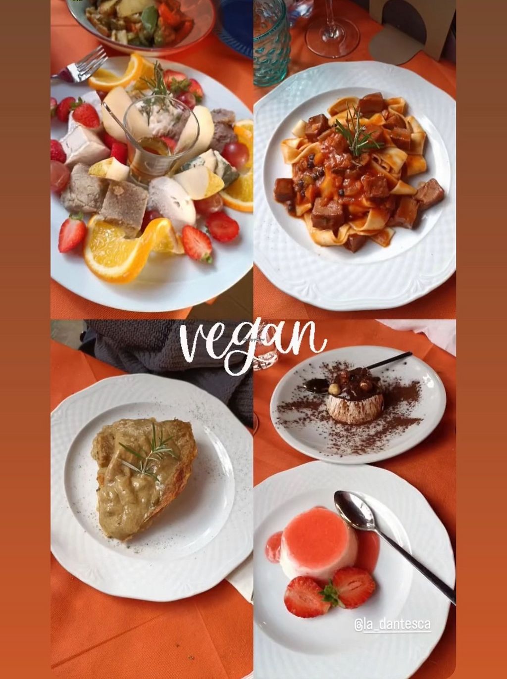 Siamo stati a cena al ristoro dantesca molto piatti veg e una lasagna ai funghi e olio al tartufo buonissima personale cordiale dolcì veg molto buoni torneremo presto