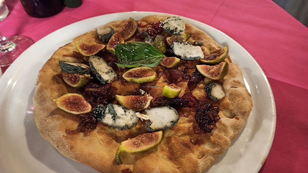 Pizza con fichi, cipolla caramellata, e gorgonzola veg