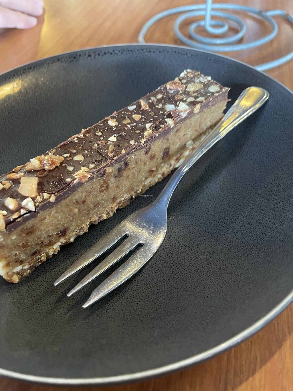 Cool atmosphere and music, friendly polite smiling staff, and good selection of vegan labelled food. The chocolate cake was light and fluffy with a rich choc taste, and the cranberry peppermint slice was on point too!
