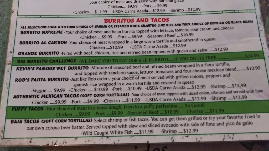 Menu - veggie fajita burrito no cheese, no dairy