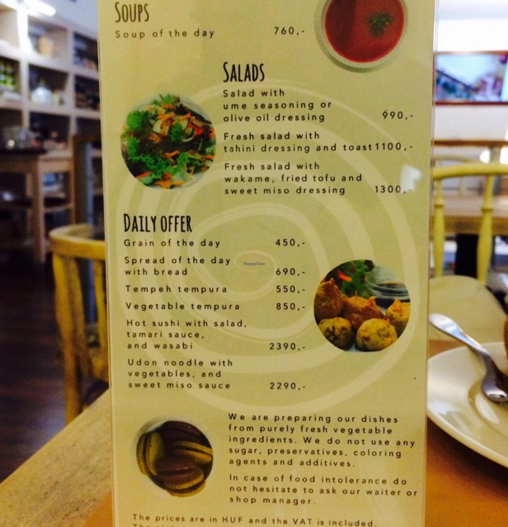 I went here twice for lunch. It's a buffet type of thing and you can choose between two mains and two garnishes or you can have a little of everything on your plate plus salad. The food is very healthy and makrobiotic, but not very rich in flavour. The portions are decent. Service is friendly but not very fast. The atmosphere is good and the location is very central. If you're a vegan try it out, but try other places too.