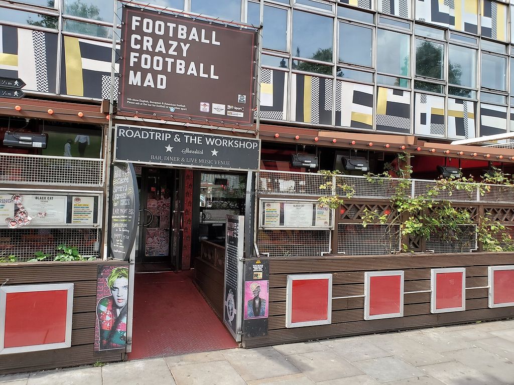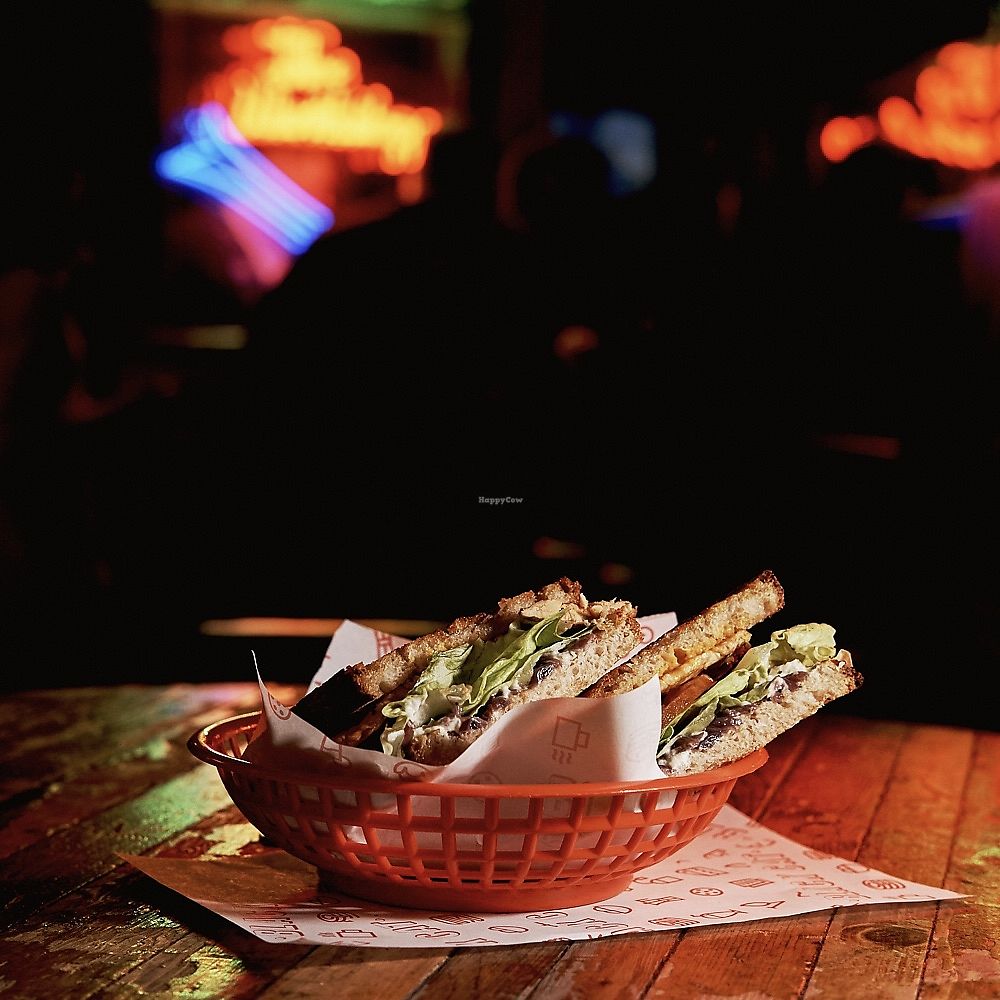 Offers food from Black Cat Cafe such as a selection of burgers, small plates and fries. Also has labelled vegan-friendly alcoholic drinks. Reported closed October 2020.