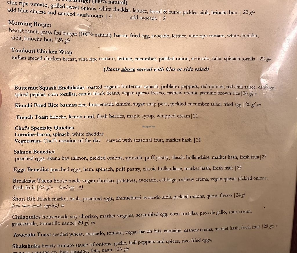 Plant based options are still very limited here, but Robin’s offers clearly marked selections on their menu. To be able to eat with the rest of my group, and order directly from the menu, was so refreshing. Clearly marked soup, starter, entree and dessert made ordering a breeze. The food was fresh and delicious, and I could not finish the large portions. I appreciated the dining experience so much and would highly recommend Robin’s. The omnivores in my group loved their meals as well, so overall a wonderful dinner