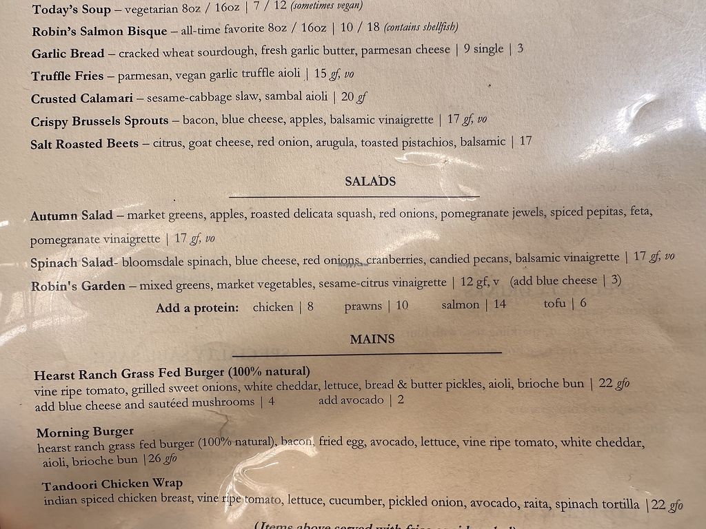 I know, everyone has their opinion and preferences. Robin's is a wonderful restaurant with beautiful grounds. The vegan options are what makes this our favorite stop while in Cambria. Great salads!