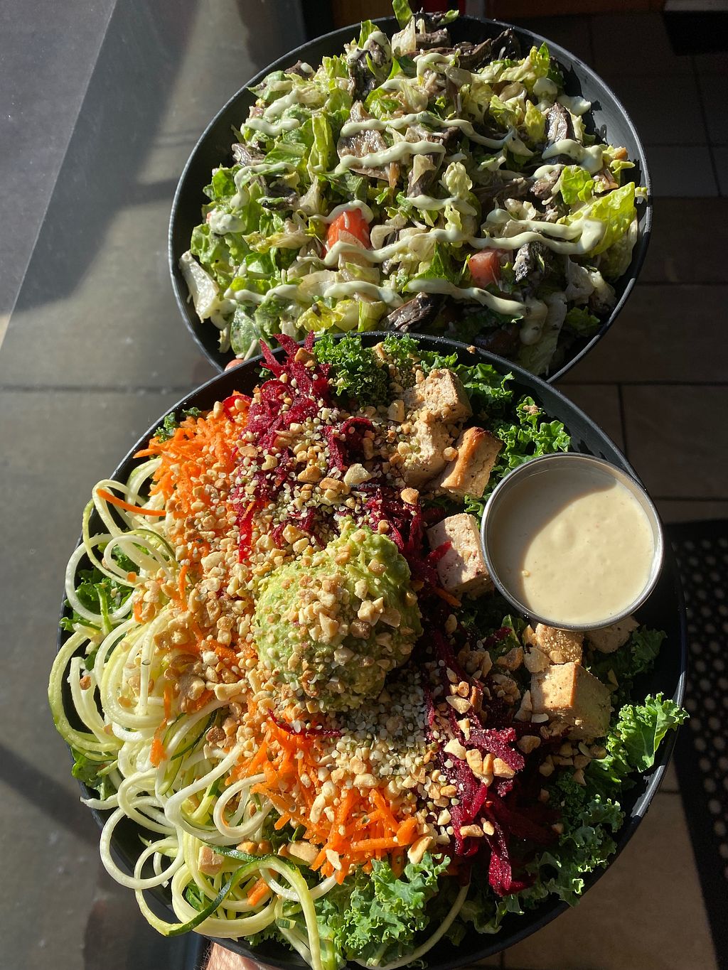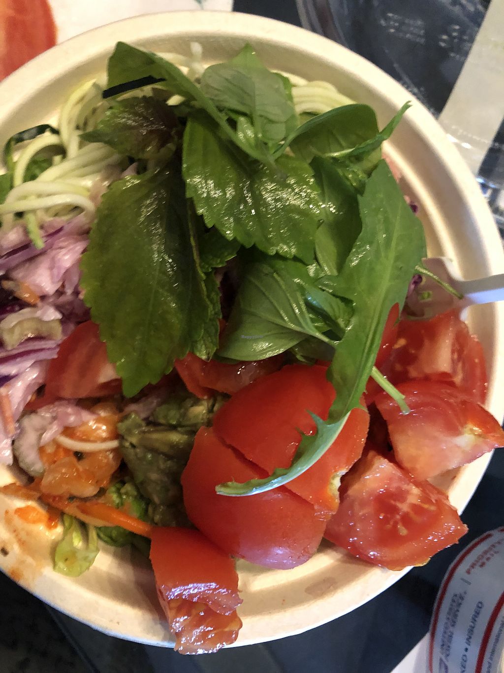 Build your own salad -lettuce, avocado mash, cucumber, tomato, zoodles…