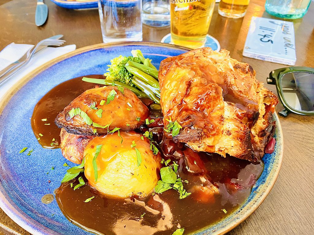 Fav meal….’Vegan Fish & Chips’ Staff are so lovely here…dogs always we…