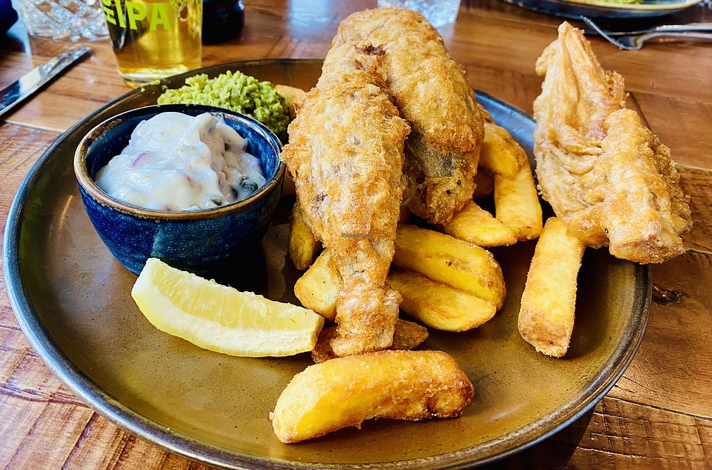 Fish & Chips served with minty mashed peas (amazing flavor!)