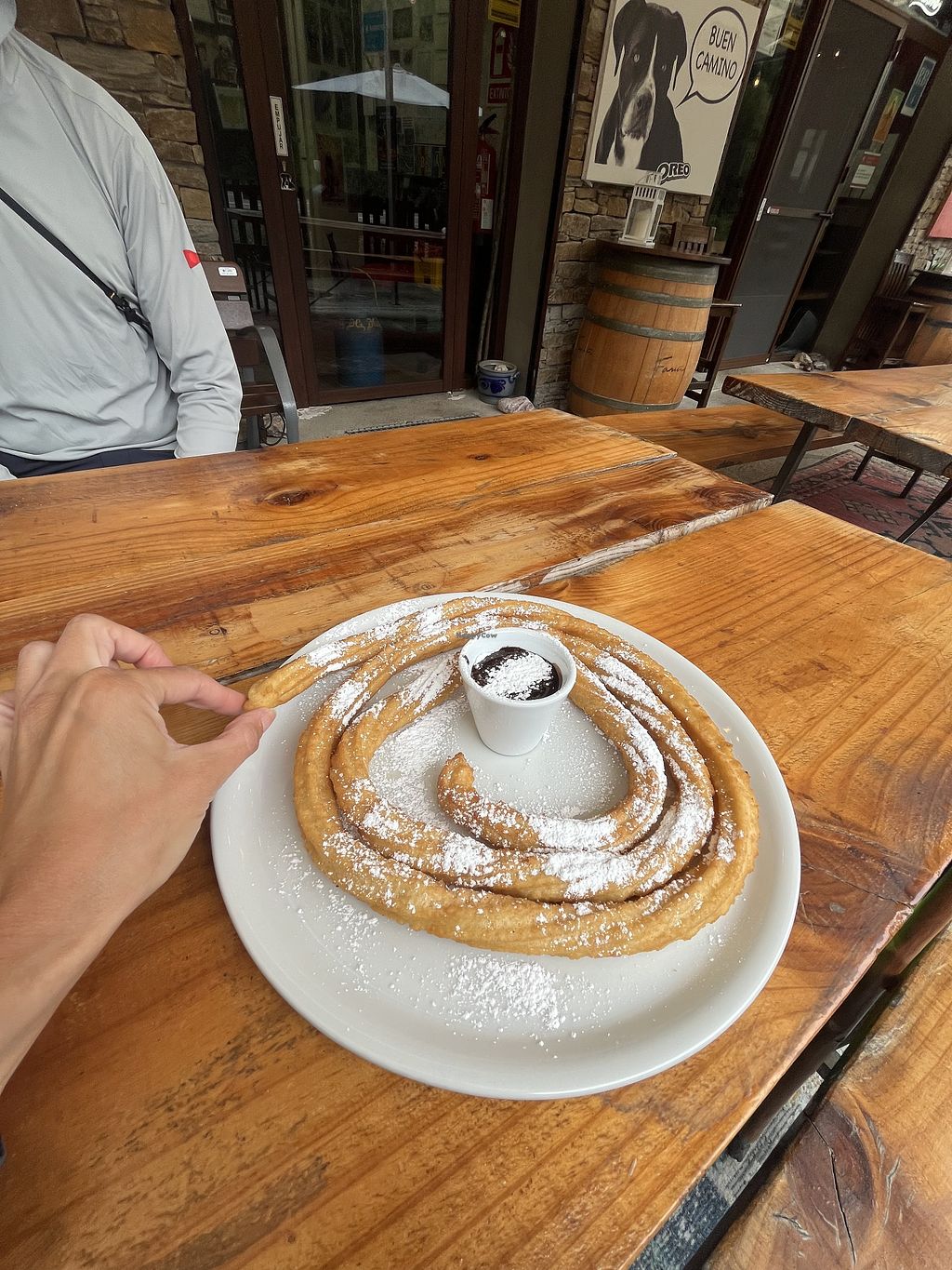 I stayed as a pilgrim in the albuerge at this place and joined the community dinner. The owner David was very accommodating and created a very tasty salad with vegan meatballs and garlic bread as a starter. The main dish was two different kinds of pizza and as a dessert they offered lemon or mango sorbet. Everything tasted very good and it was an overall special evening with the owners and other pilgrims from all over the world. Thanks and buen Camino!
