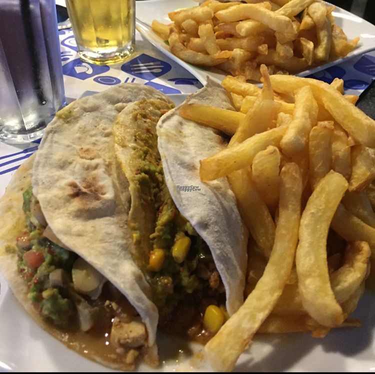 La atención, bueno o - La masa de tacos era debil. Te manchabas cuando intentabas comer. Las papas rocket (No tenía queso vegano) se enfriaban enseguida. Le bajaron un poco el precio pero sigue siendo caro. Gracias, pero volveré a comer en ese bar adelante.