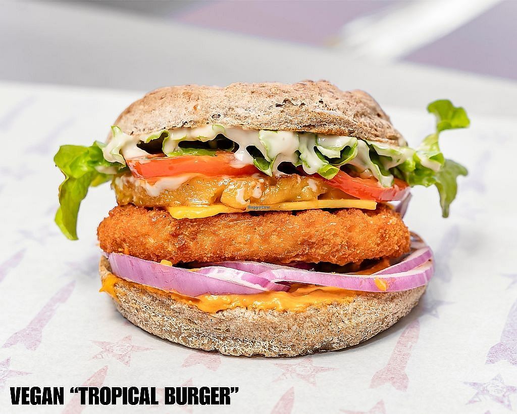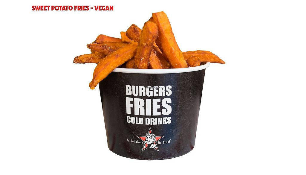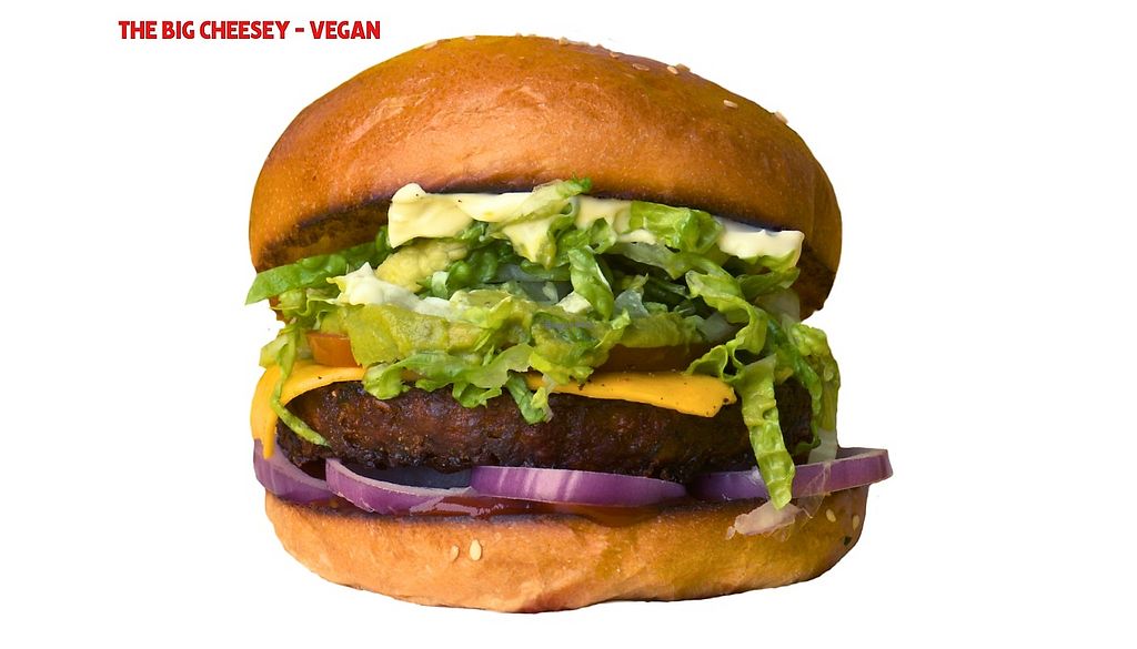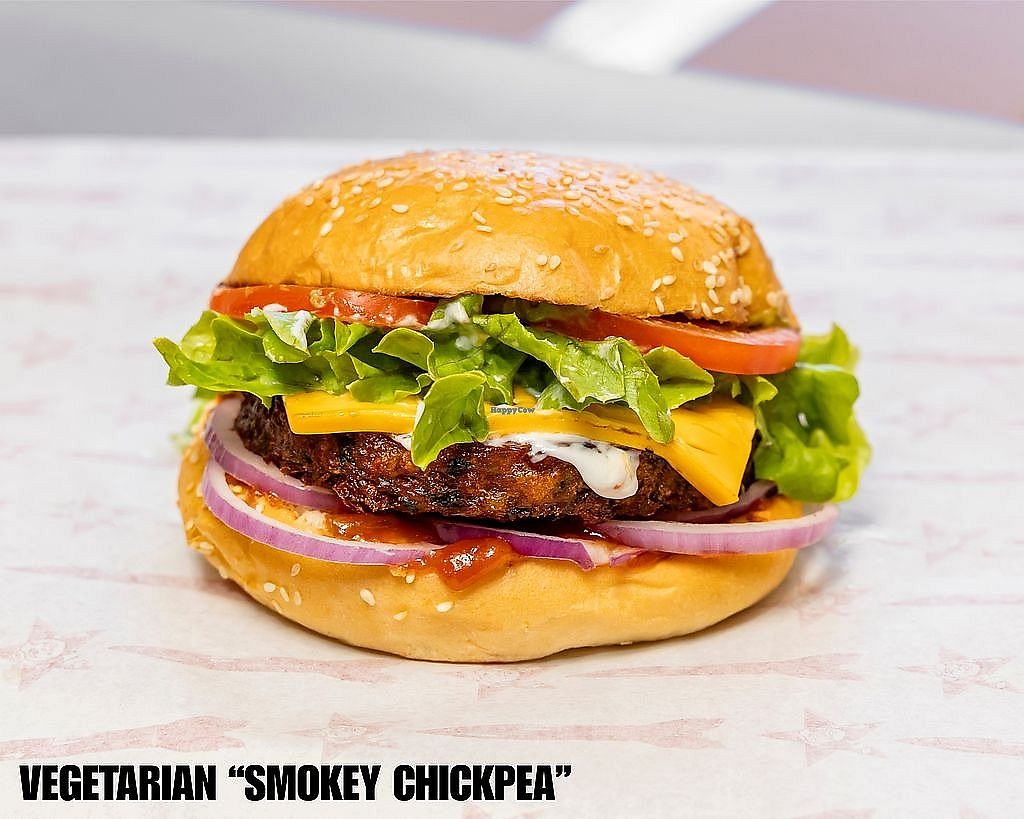 Serves meat, vegan options available. Local burger joint with clearly labeled menu featuring burgers and side dishes such as french fries and sweet potato fries. Vegan cheese and aioli available. One of three locations. Open Mon-Sun 6:30am-8:30pm.