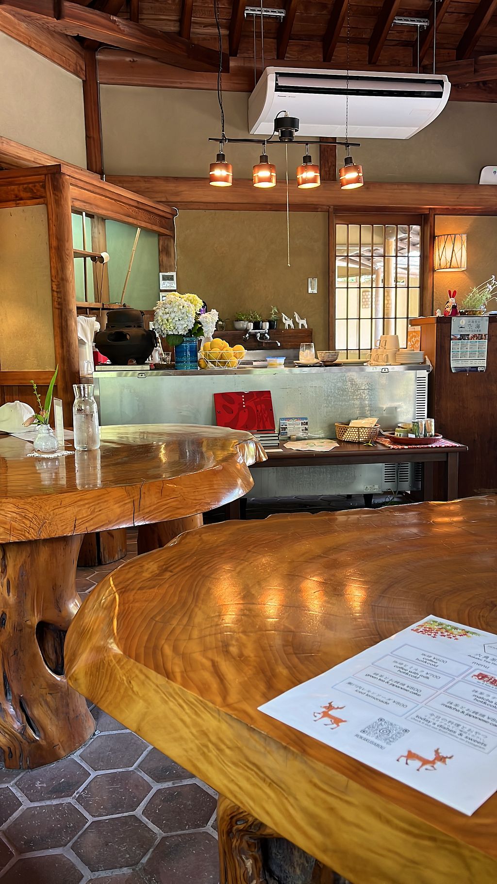 I discovered this lovely little place because they had a sign outside advertising vegan somen! It was exactly what I needed on a hot day- a bowl of refreshingly cold and chewy noodles with vegan dashi and spring onion. They do the one main dish (this time, somen) and a few desserts and drinks- tea, coffee, matcha etc. Very simple and enjoyable. The host was super lovely and was really interested in learning where people were from. She had many requests for vegan food so they changed to vegan 3 months ago. The cafe itself is in a small wooden building, with wooden benches and tables- lovely and quiet. The host even had to go outside to shop a deer out of the garden while I was there! 😂 Really great, welcoming experience.