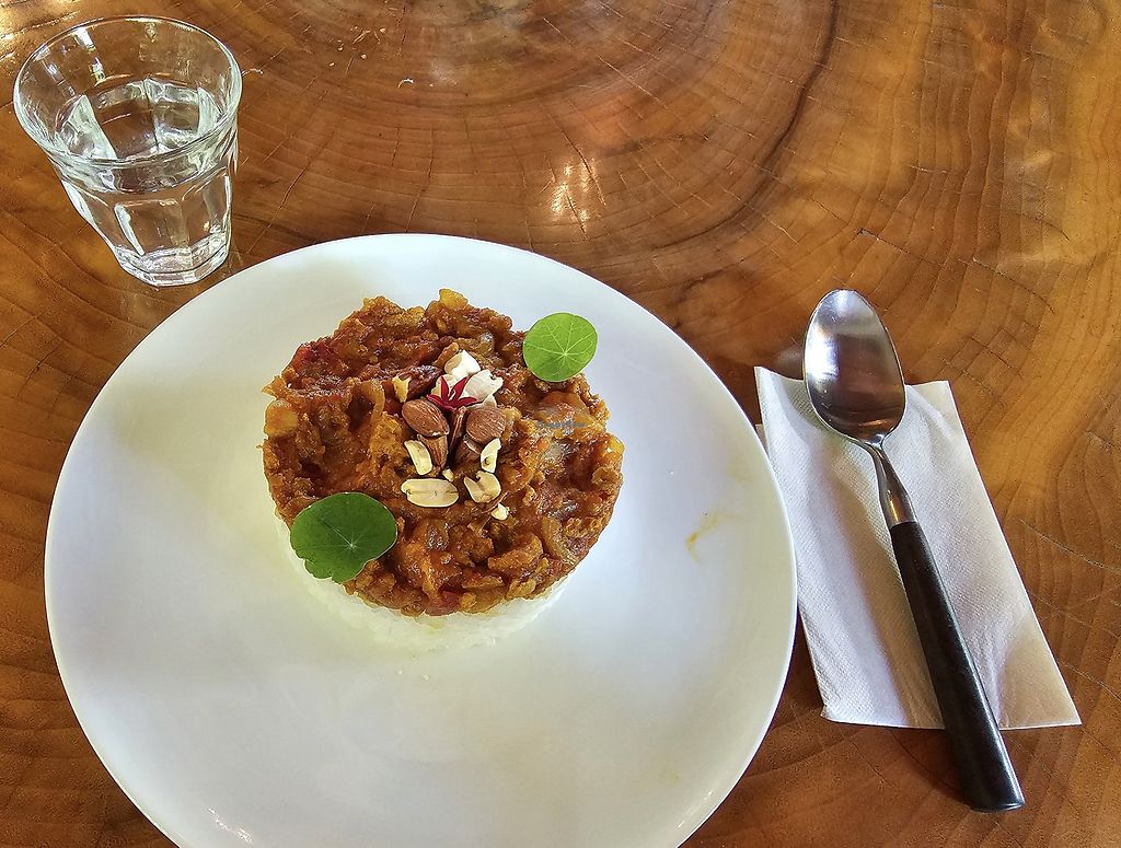 I found this place through HappyCow and it is definitely worth the visit. There was one meal option the vegan curry which was very good! Plus I had a refreshing lemonade and the tofu/strawberry dessert. Overall, very delicious and a great stop while exploring the island. The staff was as well super nice and happy that I found them through this app 😊
