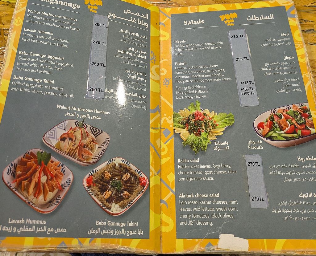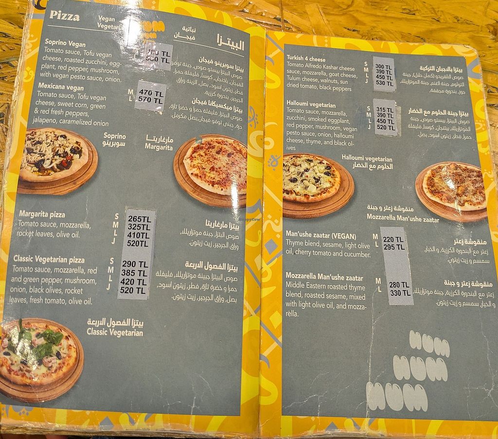Serves meat, vegan options available. Serves traditional Arabic, Middle Eastern and Turkish cuisine. Serves two kinds of vegan pizzas without any vegan dairy products, vegan rolls, hummus, falafel, vegan borek and salads; all are clearly labeled. Staff speaks Arabic, Turkish and English. Free Wi-Fi. Open Mon-Sun 11:00am-10:00pm.