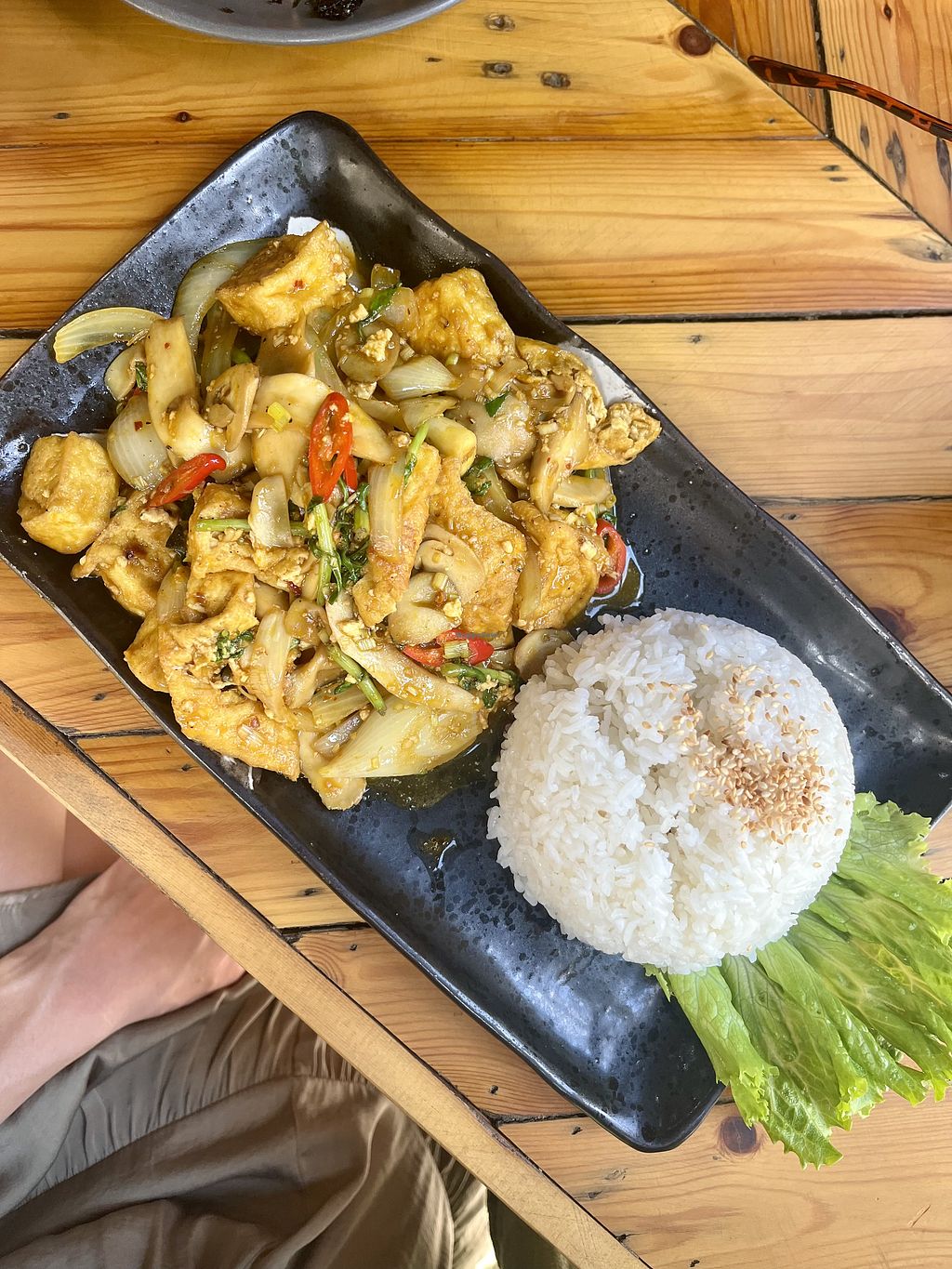 tofu and mushrooms on chilli and lemongrass
