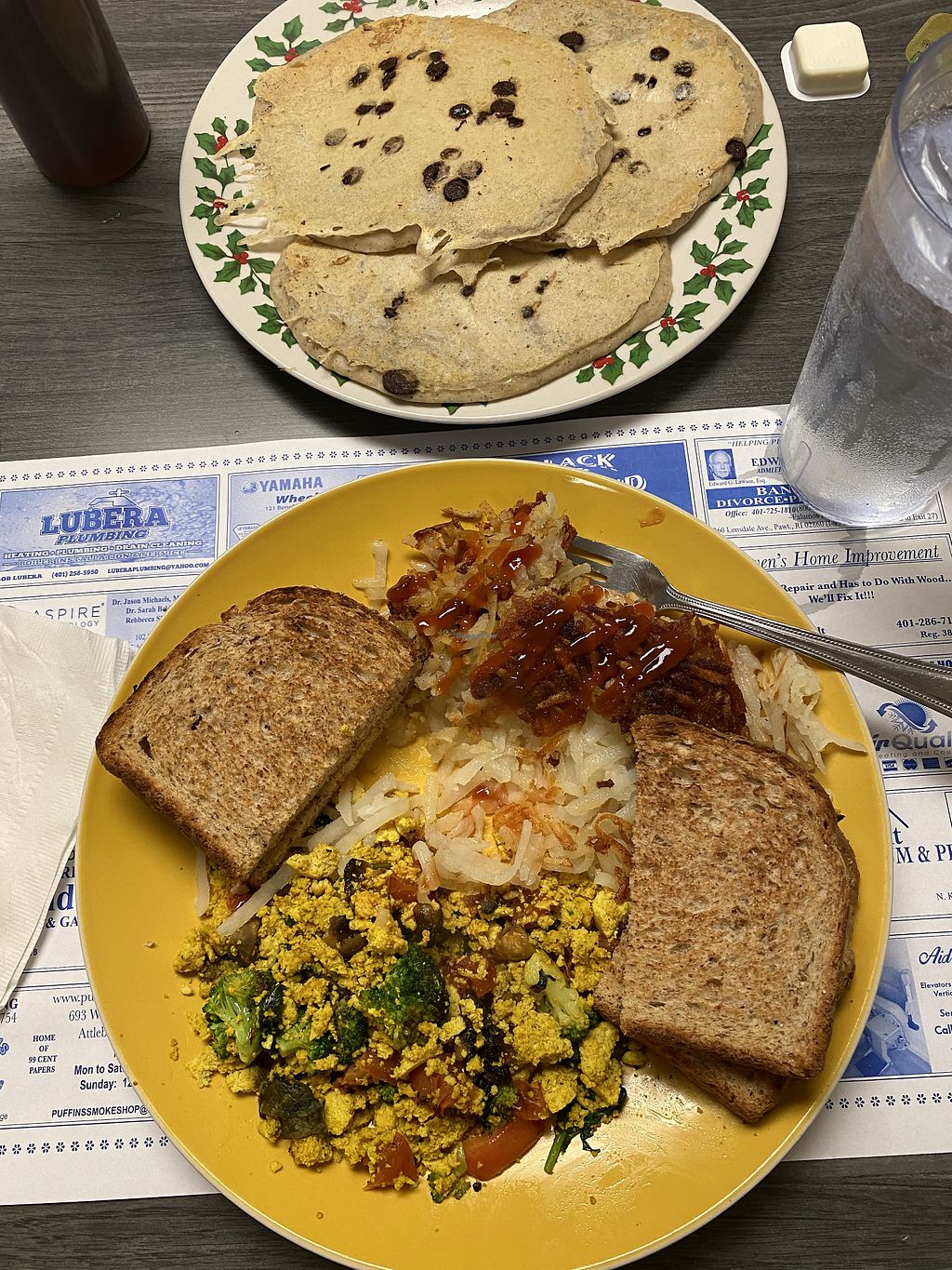 tofu scramble and vegan pancakes
