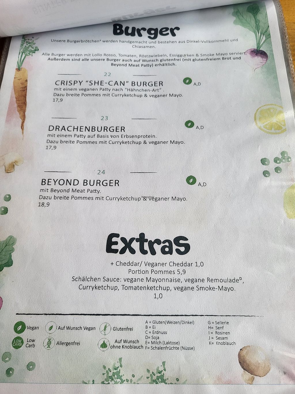 Bin oft dort. Man kann gemütlich drinnen oder draußen sitzen. Gute Auswahl an Gerichten. Essen schmeckt sehr lecker. Es gibt eine Auswahl an verschiedenen Schnitzeln (soja-, sellerie..) oder Burgern. Auch low-carb Gerichte. Alleine der Vorspeisenteller macht schon ziemlich satt. Leckeres Brot vorweg gibt es auch noch😄Tolles Restaurant!