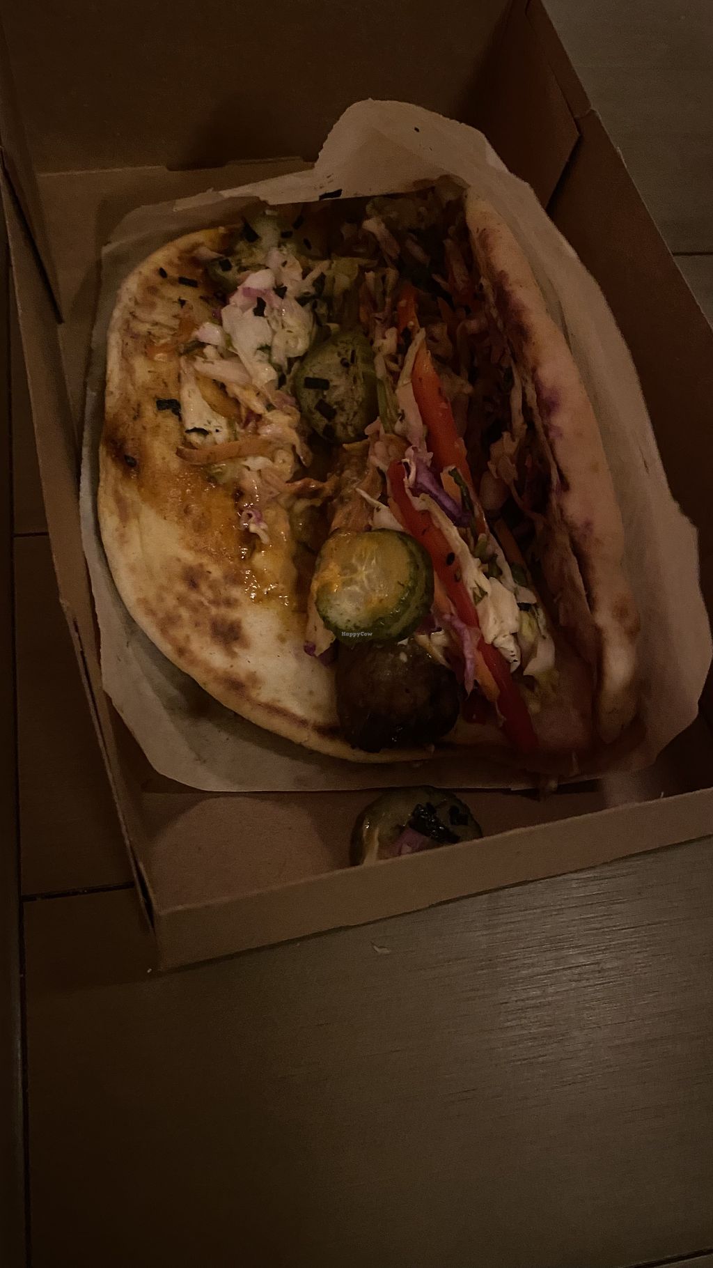 Cons: Pita bread too thick, Gochujang sauce had no spice at all, Beyond meat was too soft