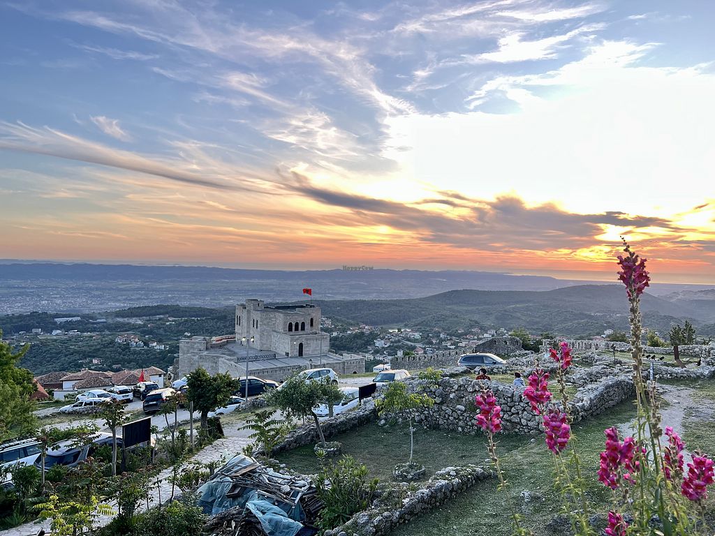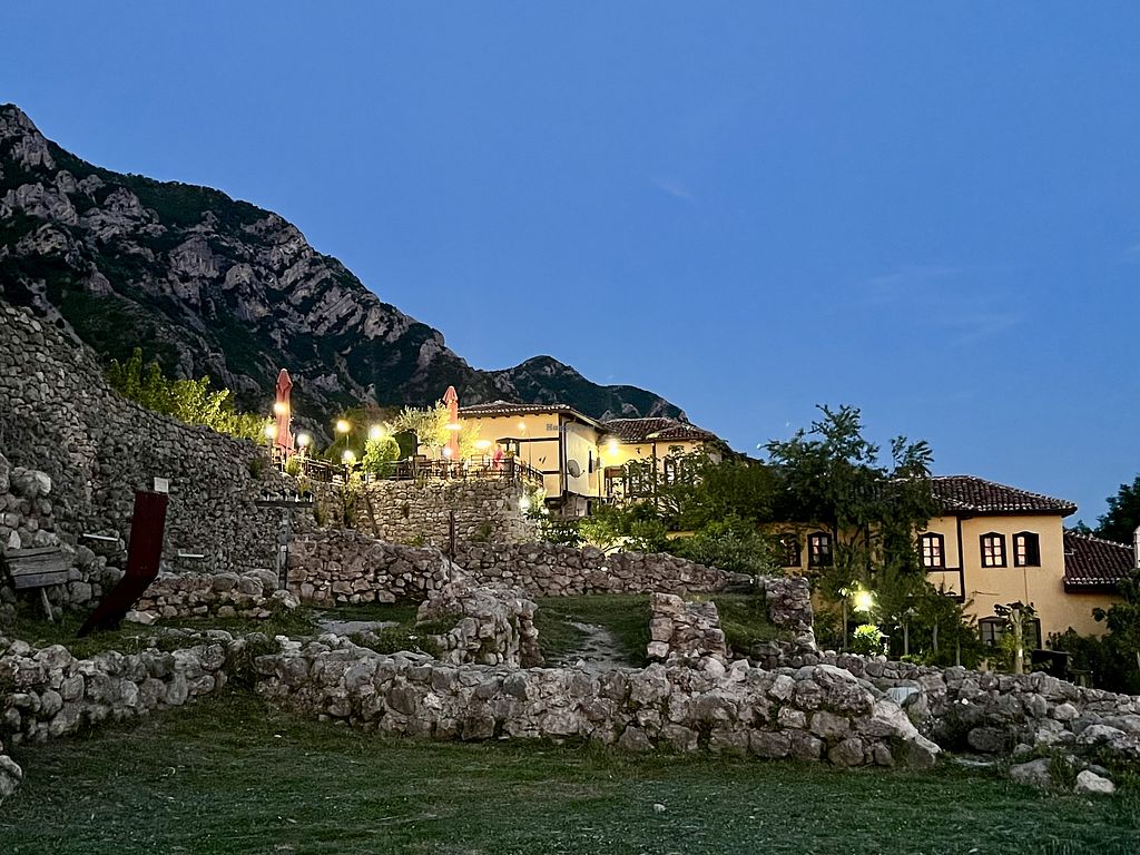 This hotel and restaurant is inside the castle walls and we got to dine on the walls, next to the tower whilst watching the sunset. It was quite windy and chilly so we did move inside after we finished our food. They were able to adapt the veggie board to a vegan board for us, and I quizzed to make sure they understood was vegan meant. The board came with a variety of veggies, fries, stuffed vine leaves and pies. They have an option of veggie pasta too (can be vegan). The service was very good and run by a family. Food was tasty & the portion to share was enough enough though its listed as a starter. That had some homemade wine- 600lek for 500ml which was good and we finished the meal with some herbal teas