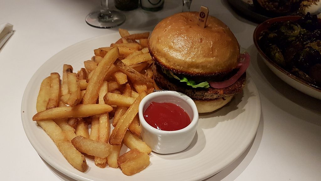 Serves meat, vegan options available. Serves many vegan dishes such as the 'Impossible Burger', roasted kabocha squash, Brussels sprouts, mushrooms, carrots and other side options. Vegan items are labelled. Reported closed July 2021.
