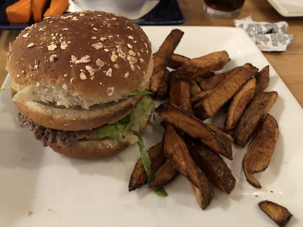 Pad thai with big zucchini pieces, fresh fries (not from a bag), and A…