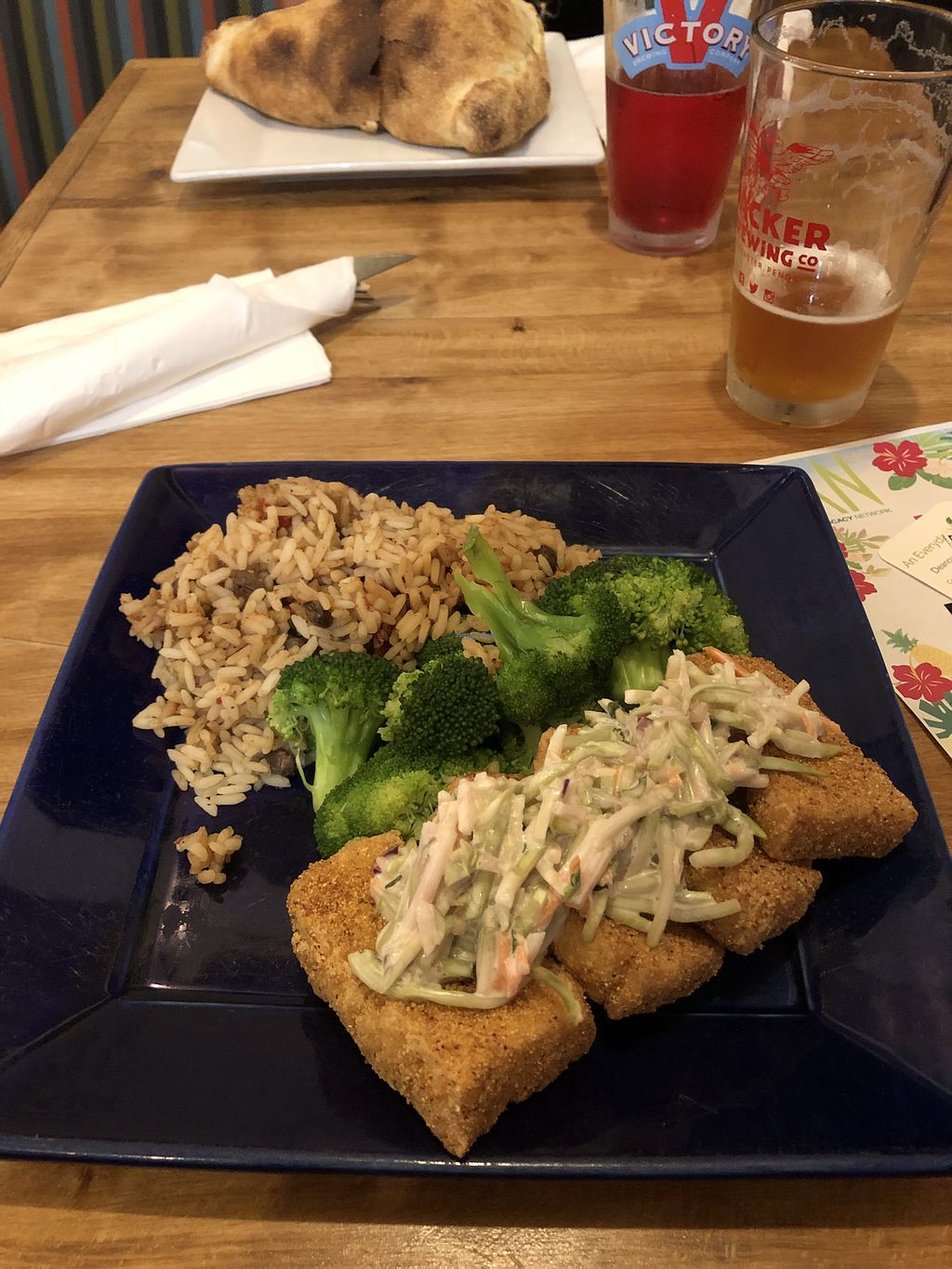 Tofu Buffalo bites: tofu flash fried, tossed with Buffalo sauce, serve…