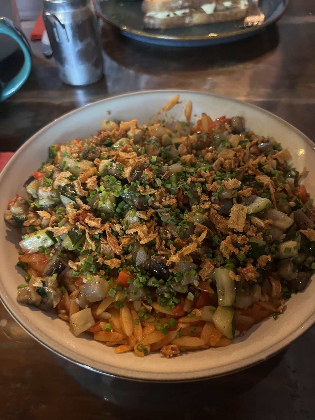 Serves meat, vegan options available. Cafe, brunch, and restaurant offering adaptable dishes such as mushroom toast, avocado toast, shakshuka, and orzo risotto. Open Mon 08:30-15:00, Wed 08:00-03:00, Thu-Fri 08:00-15:00, Sat-Sun 17:30-22:00. Closed Mon & Tue.