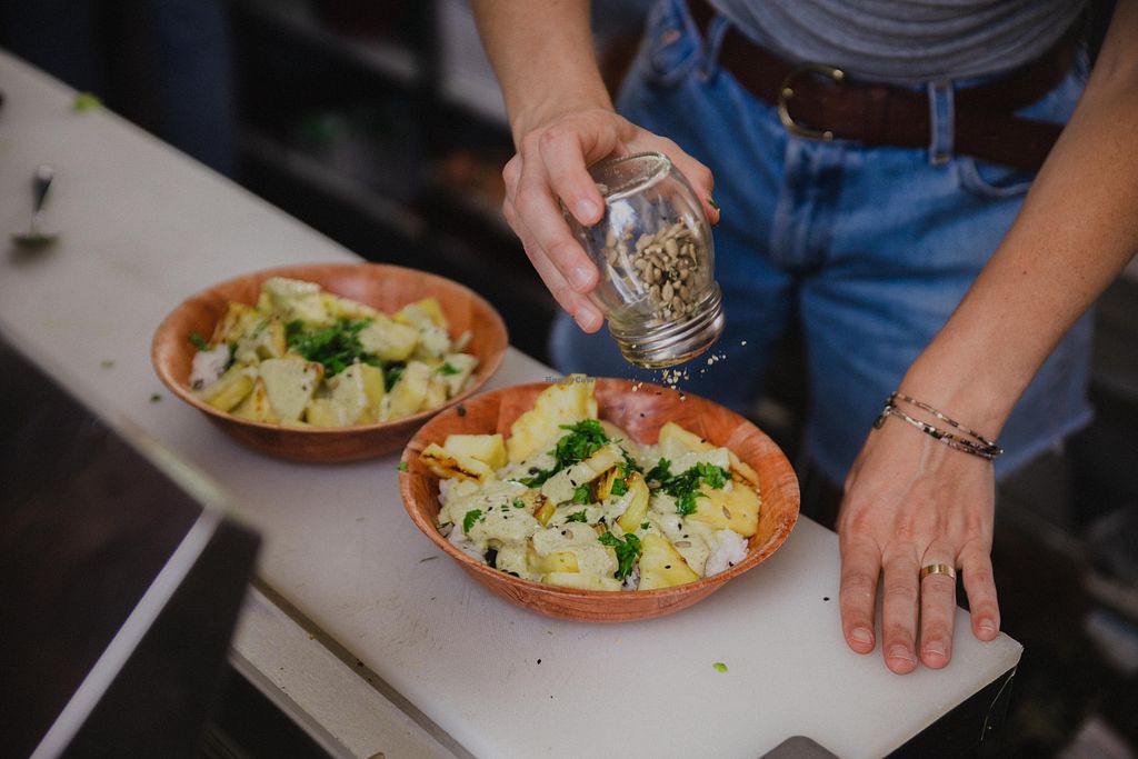 Fully vegan food cart that uses in-season and local produce. Serves veggie burgers, bowls, salads, nachos, etc. Open Wed-Thu 11:00am-7:00pm, Fri-Sat 11:00am-8:00pm, Sun 11:00am-7:00pm. Closed Mon-Tue. Subject to closing early if slow or if sold OUT.