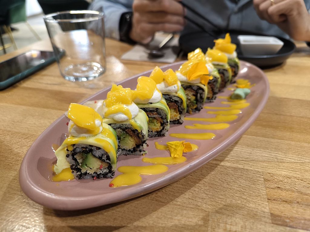 This place was amazing, super chill at night, cool vibe and amazing food that out out very quickly! You must try the Mango roll!!!