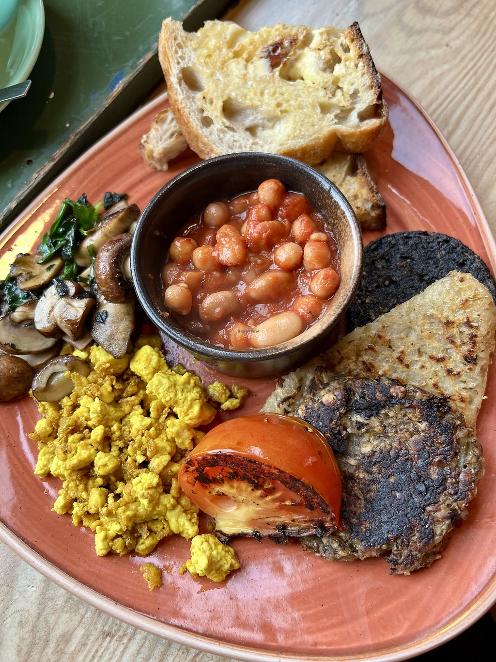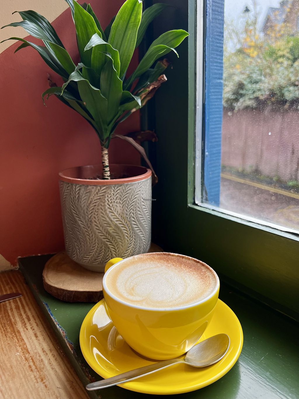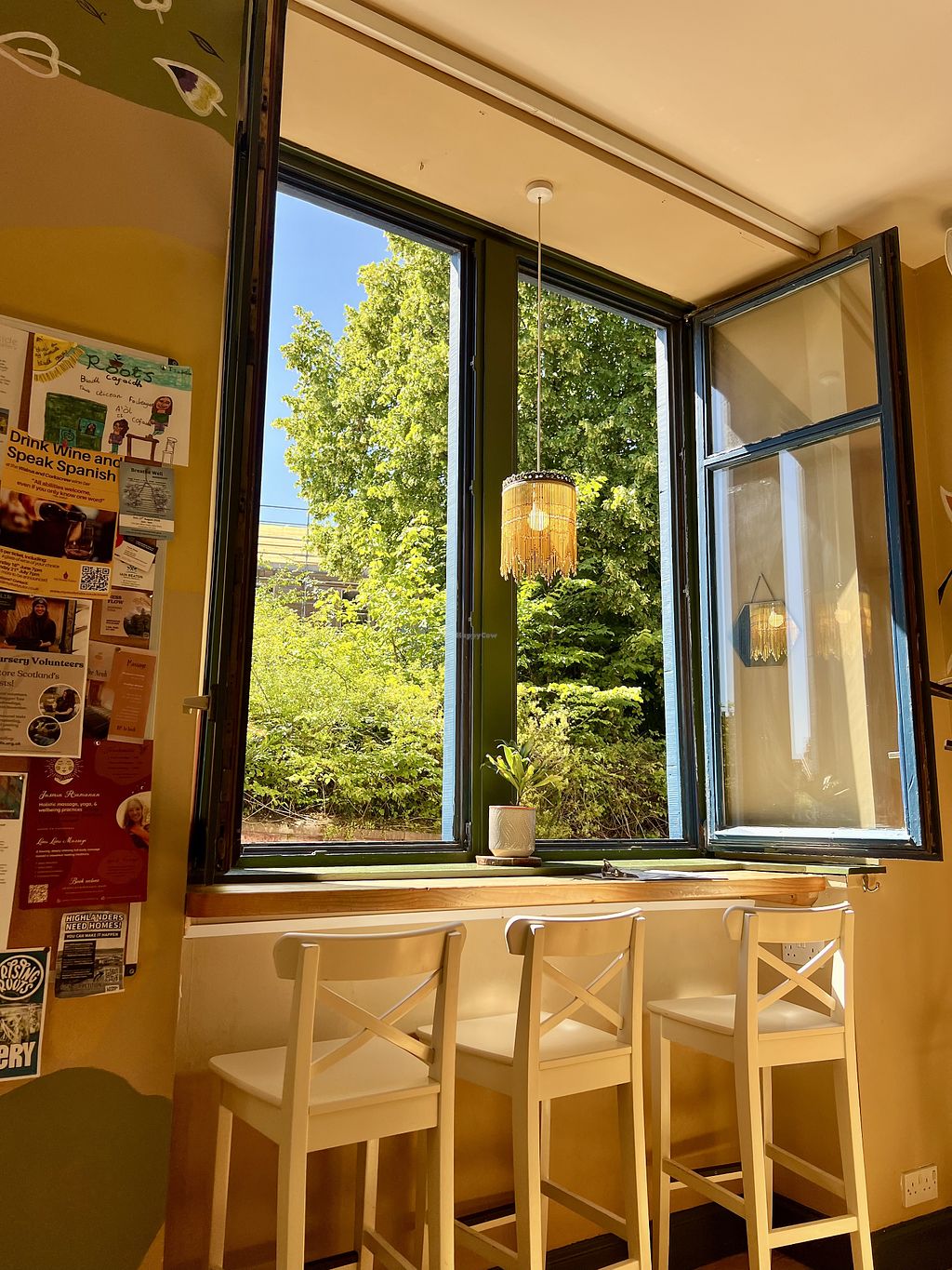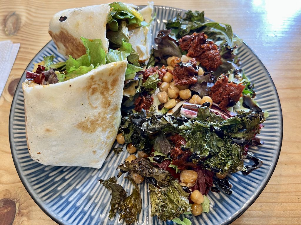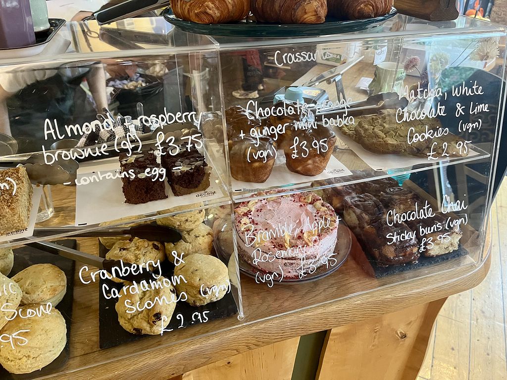 Est. March 15, 2025. Vegetarian cafe connected to previous vegetarian cafe Velocity which was at this site. Has a clearly labeled vegan avocado bagel and a buffalo wrap and possibly others. Most dishes contain egg and/or dairy, but reported most can be made vegan including breakfast, brunches, wraps, bagels & pancakes. No additional cost for vegan milk. Kitchen closes at 2:45pm (can still get drinks/cake). Hosts occasional evening events (tapas). Open Mon-Sat 09:00-16:00, Fri-Sat 17:30-22:00, Sun 10:00-16:00. Last orders are at 2:45pm (except for drinks/cakes) and 9pm for the evenings.