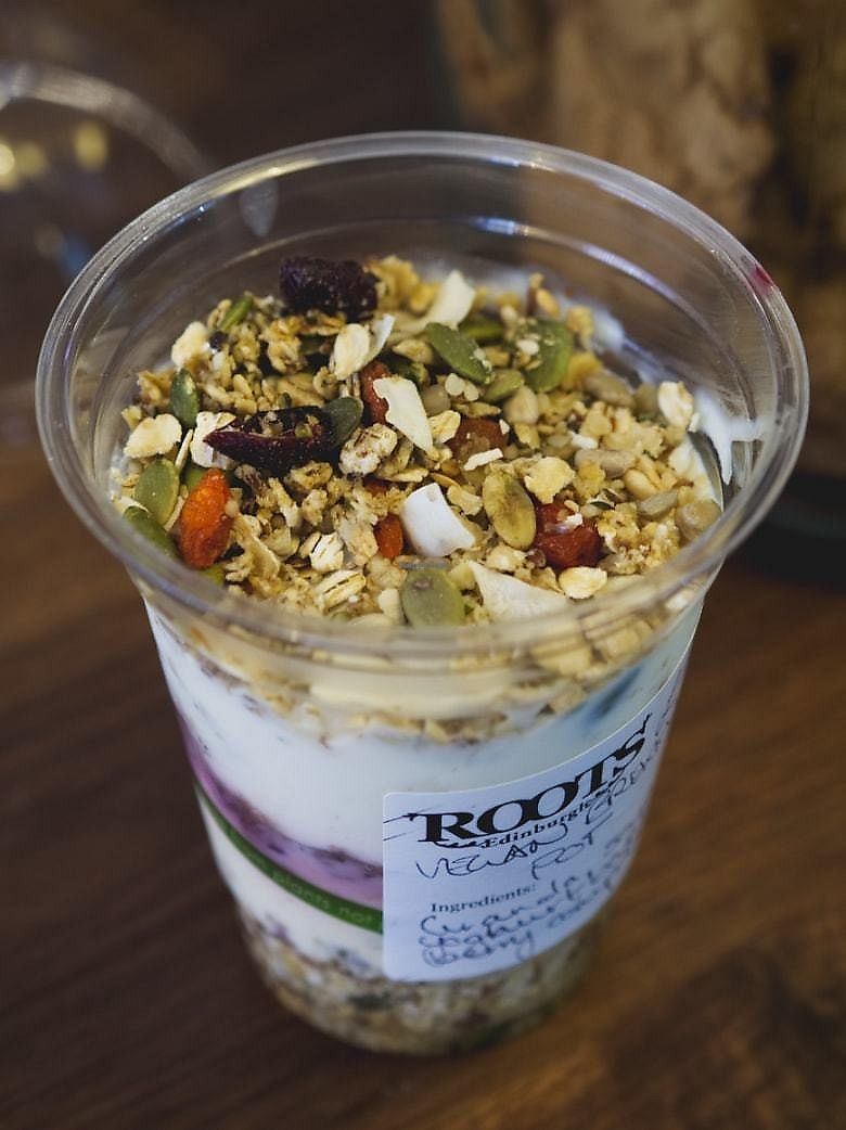 Roots is an excellent place for lunch, with a bursting salad bar (most of which is vegan) and little sweet treats such as vegan carrot cake and chocolate bites.