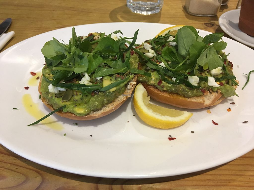 Nice cafe that has a salad bar, bagels and vegan mac n cheese. It’s not cheap but the bagel I had (avocado, vegan feta) was delicious. Salad looked fab too.