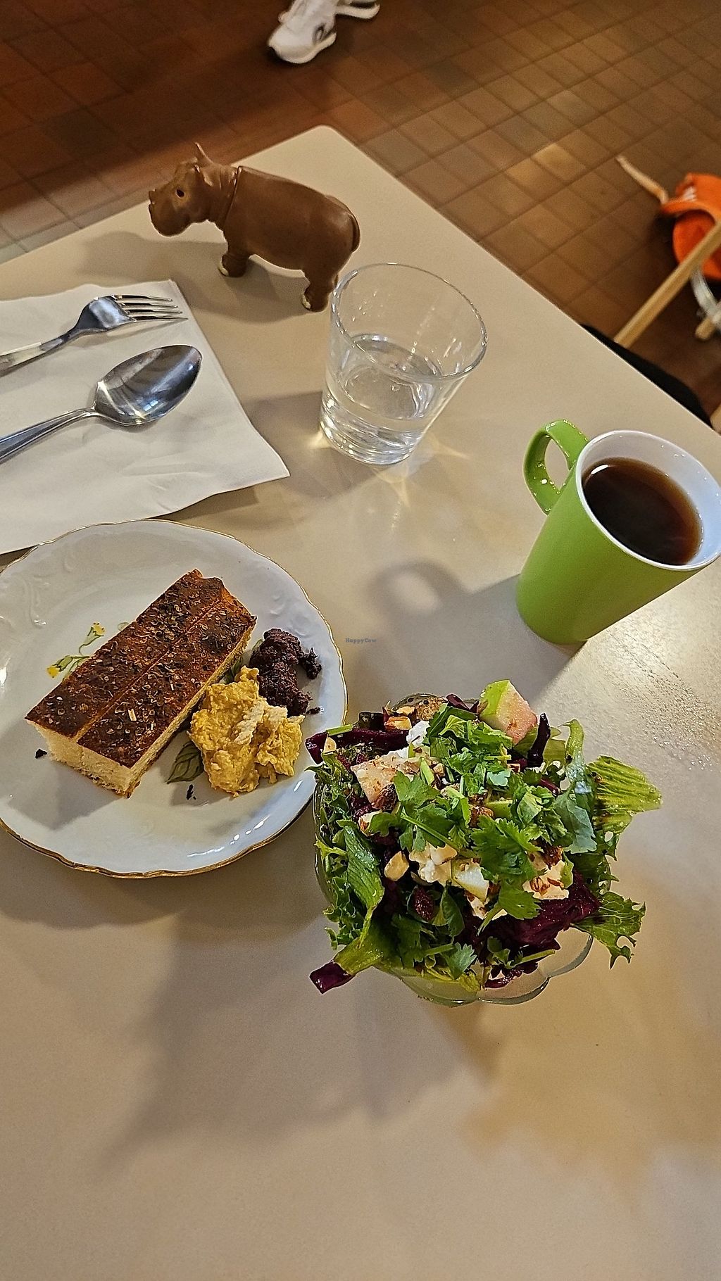 Nice restaurant, friendly staff. One main course, one salad, one soup - all vegan. Bread and hummus as a starter are included, as well as water and coffee.