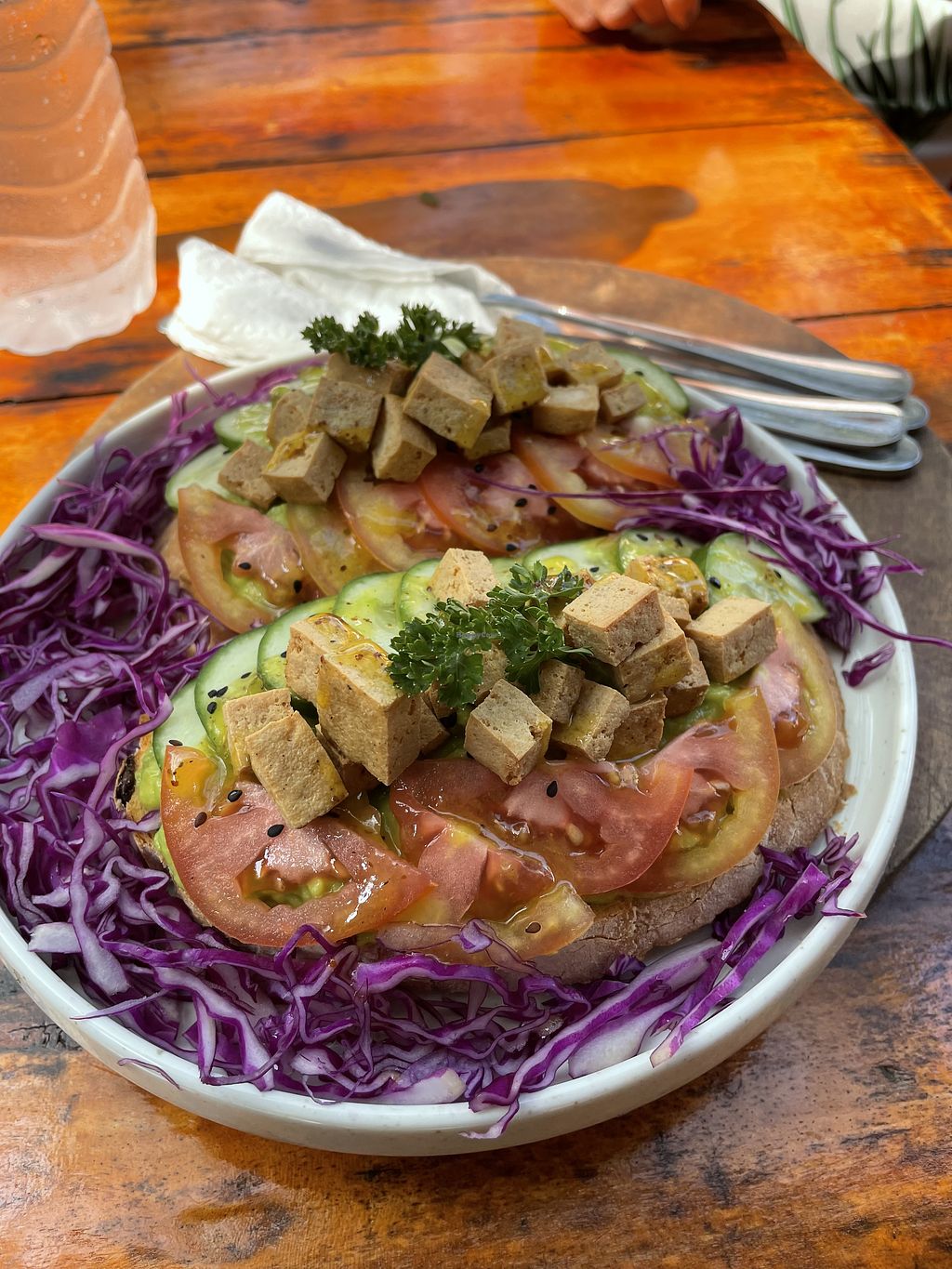 Lovely breakfast of avo toast with tofu - Edit