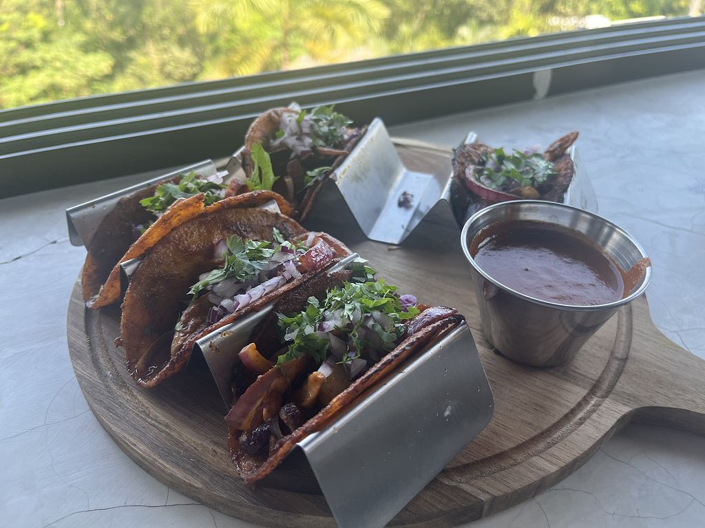 There were so many vegan and vegetarian options I had a hard time choosing! We ordered the frijo, birria, and soy good tacos and all were delicious! I especially loved the passion fruit spicy chili sauce. We also had the nutty plantains as an appetizer, mudslide smoothie, and house made kombucha. 10/10 recommend. I spoke with another person while checking out, and she told me the banana pancakes and avocado toast were incredible and has come back everyday.