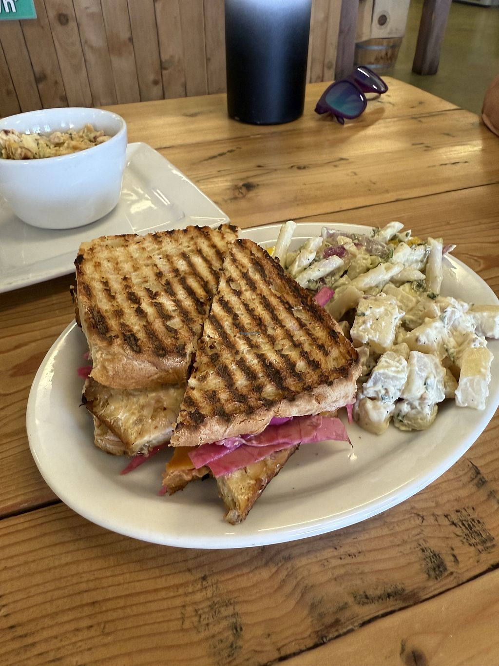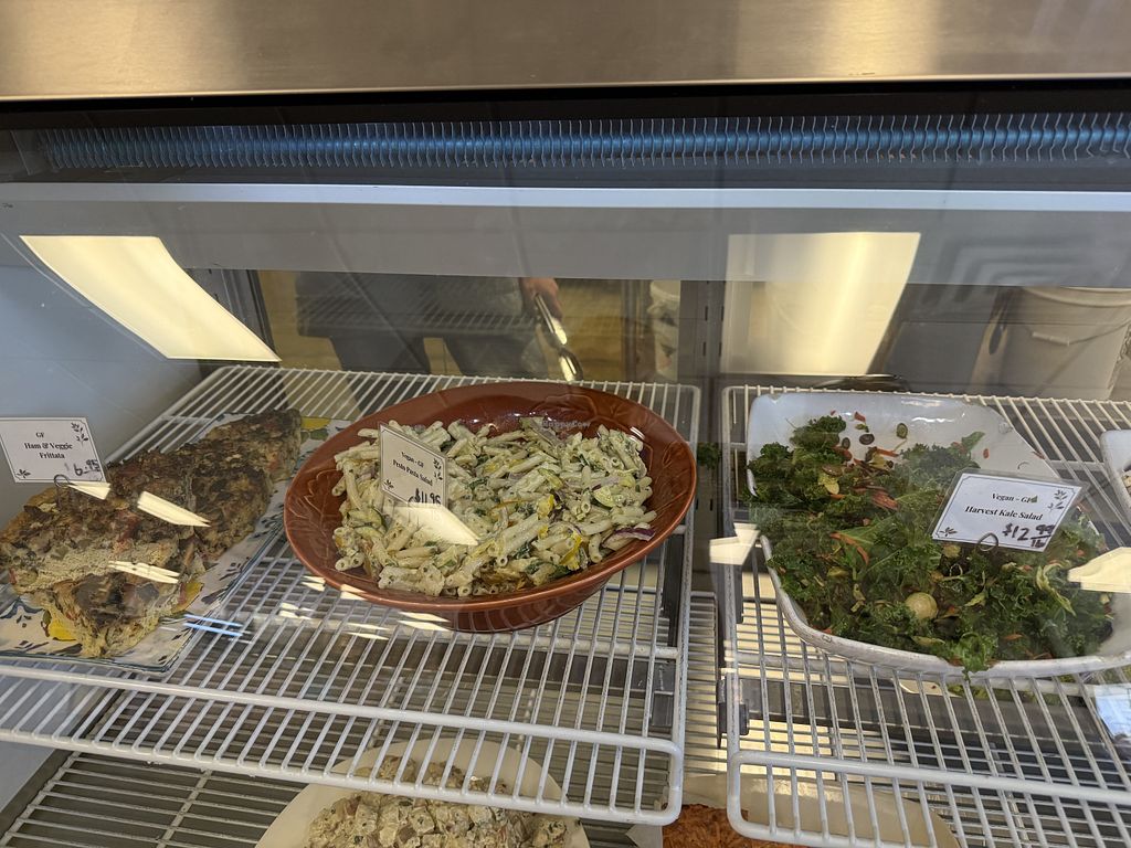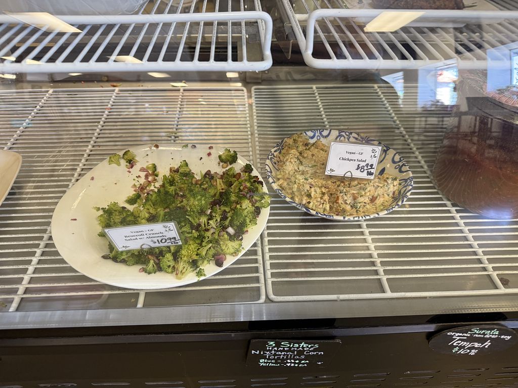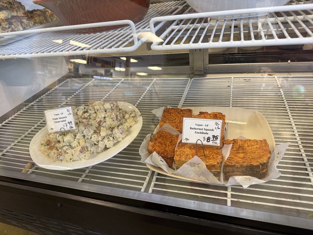 Great variety of vegan options for a small cafe in a little market. There were several vegan salad options - pesto pasta, broccoli crunch, mustard potato, chickpea salad and several others. I had the black bean and butternut squash enchilada which was more like a lasagna style. Tasty but could have been warmer temperature wise. My spouse had the tempeh Ruben which was excellent! Another person in our party got the tofu scramble and said it was super flavorful. All in all a great little spot with an unassuming exterior.