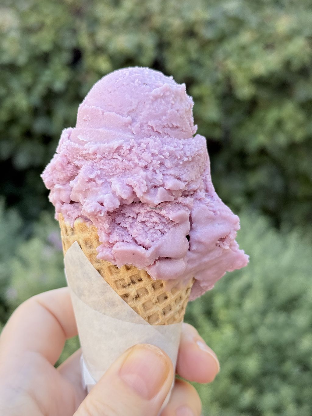 Bananas Foster ice cream on a vegan sugar cone. This is a special flav…