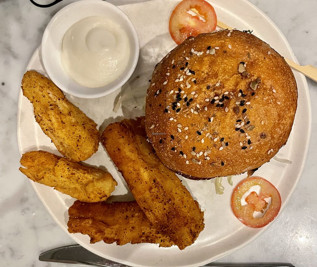 Vege burger with yucca fries