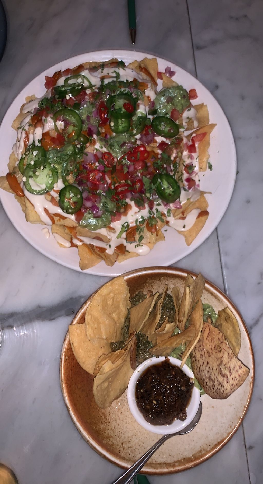 loaded nachos on top - chip&dip on the bottom