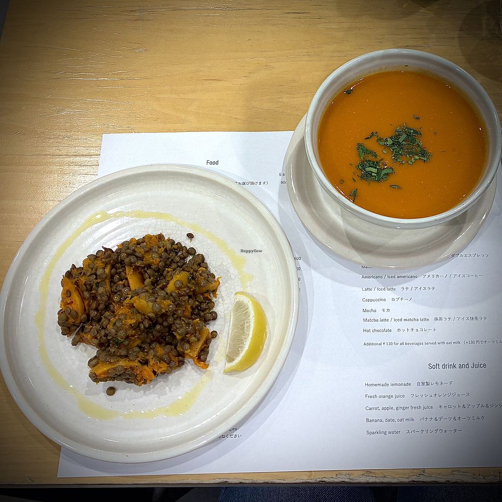Tomato, lentil and bean soup. Butternut squash, lentil and parsley sal…